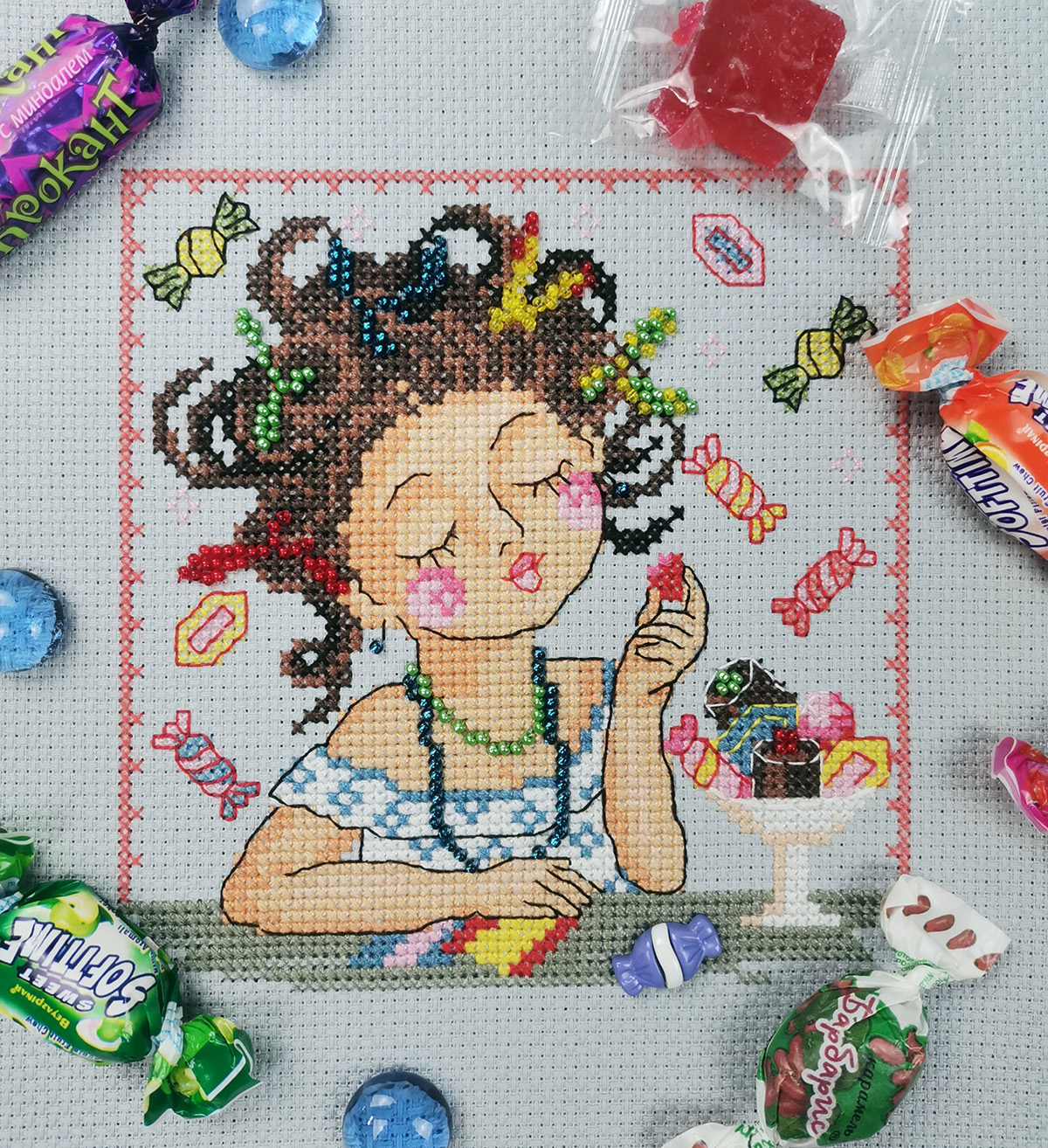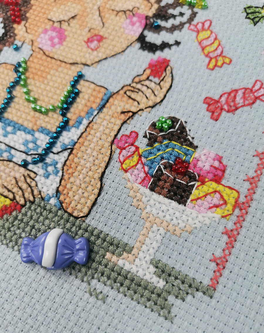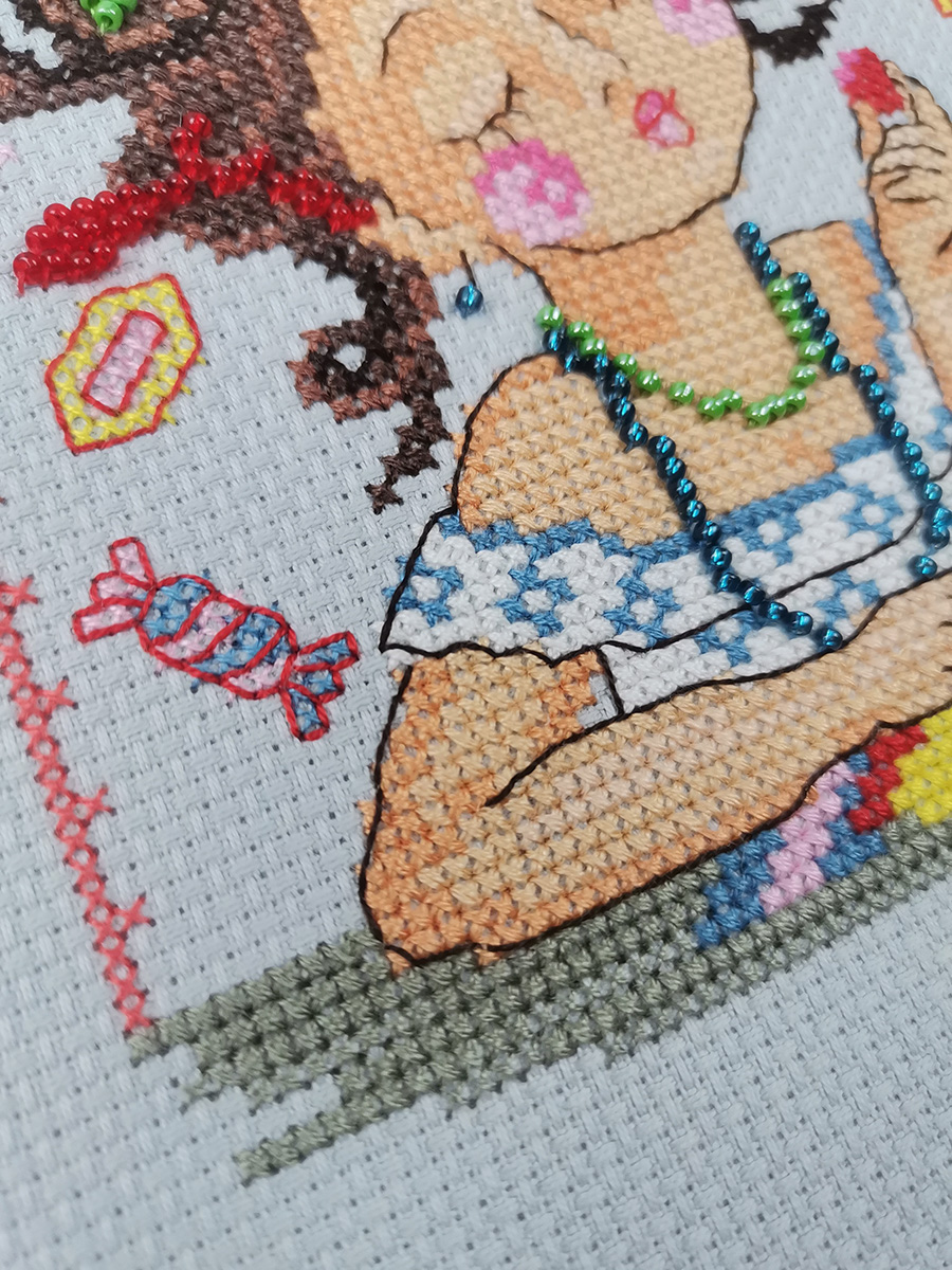 счетный крест + частичная вышивка бисером