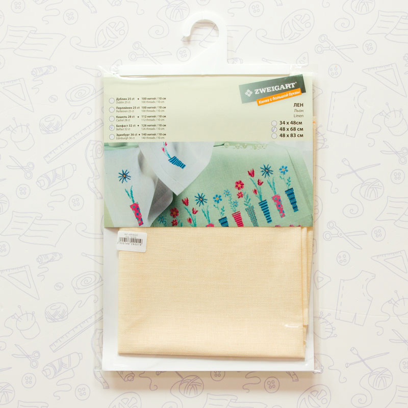 Лён - высококачественный и популярный материал, гладкая ткань, прохладная на ощупь, с благородной натуральной структурой. Именно эти качества сделали лён известным во всем мире. Данная группа тканей хорошо подходит для дизайнов, где остается много незашитого фона. Работа, выполненная на льне, выглядит, как произведение искусства. Нити полотна неравномерной толщины, что и отличает лен от иных вышивальных тканей. Льняные ткани намного мягче, чем Aida. Без пялец вышивать не рекомендуется. В компании GELA.ru существует услуга индивидуальной нарезки любого метража от рулона. Стоимость услуги 250 руб. на артикул.