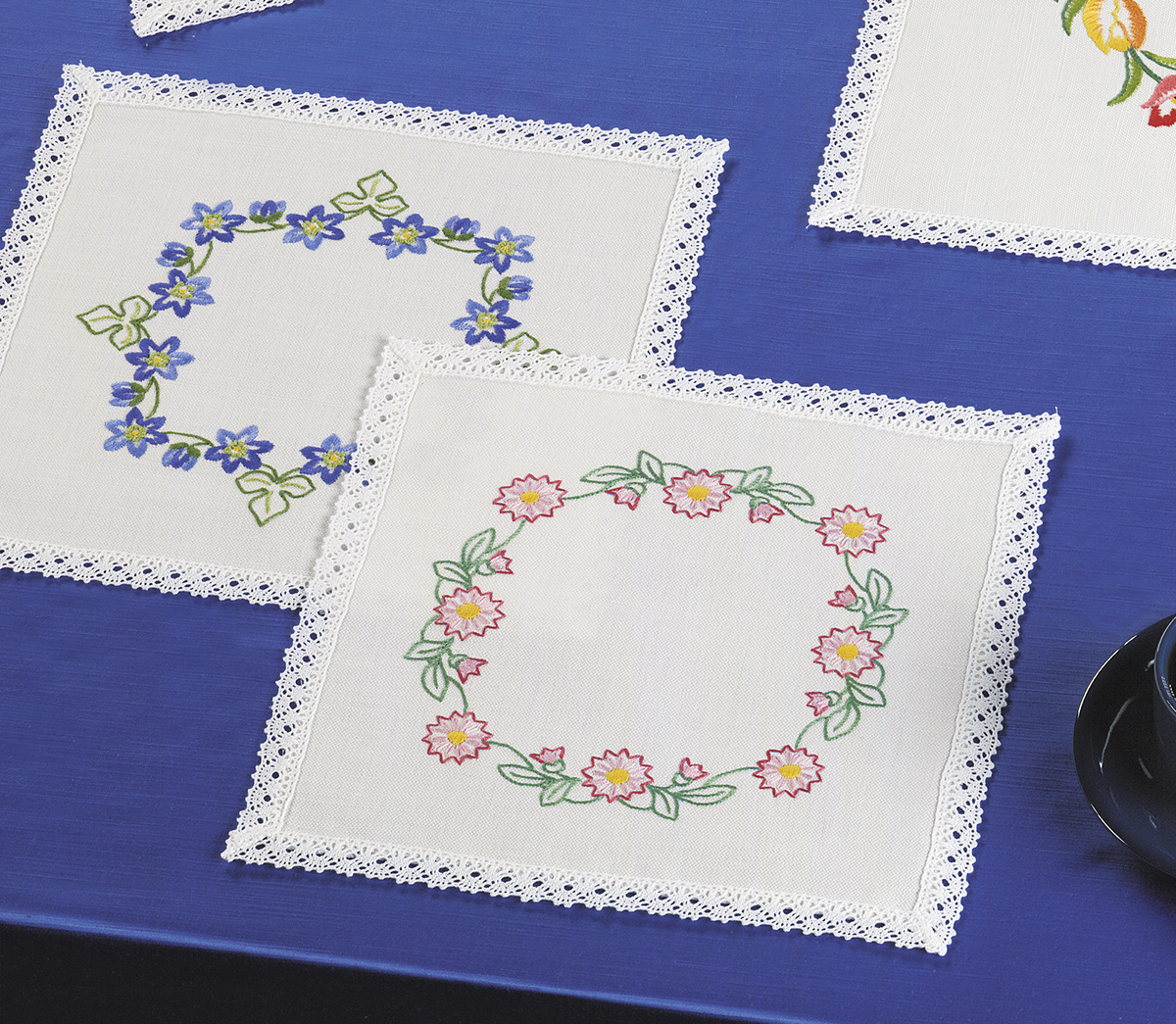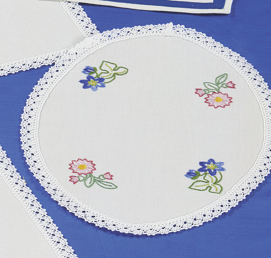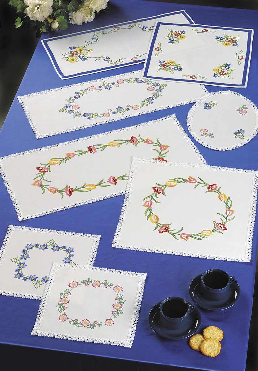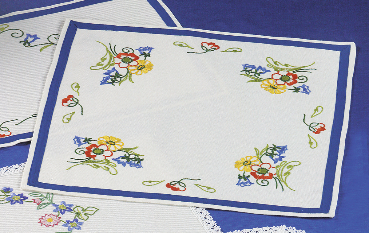 Набор для изготовления скатерти и салфетки. Просто вырежьте по пунктиру и приступите к вышиванию. Нитки и игла в набор не входят.