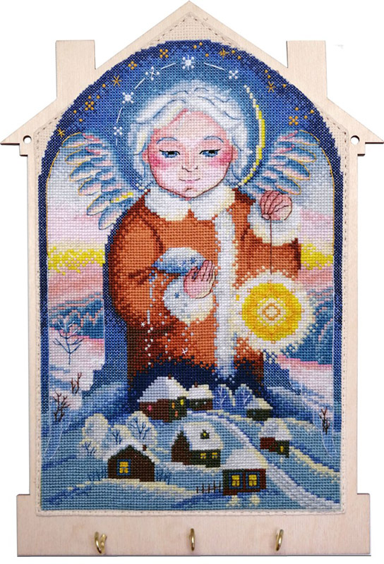 канва Aida 18 ct бежевая, мулине Finca 27 цветов, пришивная рамка (домик) 19 х 28 см, 3 крючка, игла, инструкция