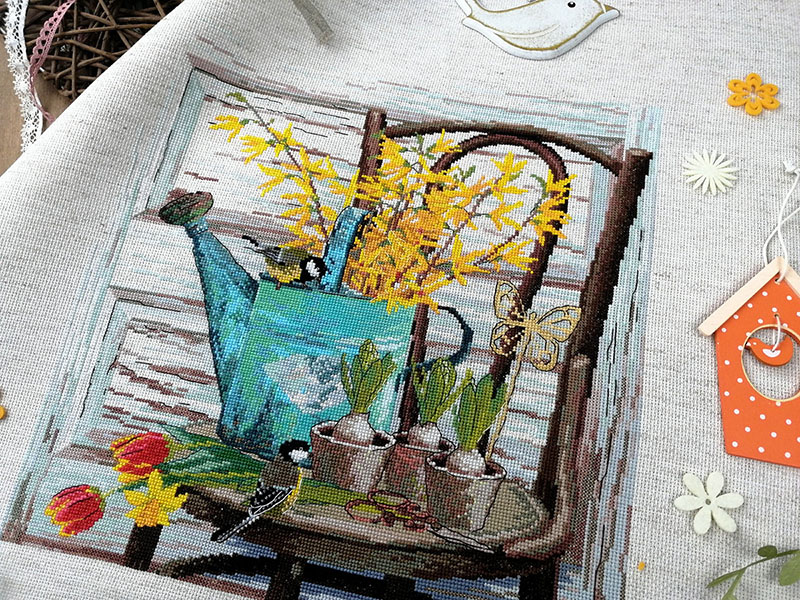 Насладившись белым великолепием зимы, мы с возрастающим нетерпением начинаем ждать весны и пробуждения природы. Соскучившись по ярким краскам, мы радуемся первоцветам и звонким песням синиц, предвкушая пышное цветение лета. Дизайн «Голубая лейка» - яркий весенний сюжет, посвященный романтике садоводства и красоте цветения.