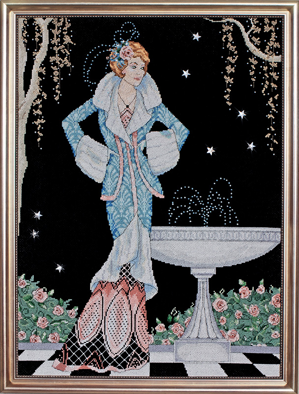 канва Aida 14 ct черного цвета, бисер, пайетки, мулине, игла, схема, инструкция