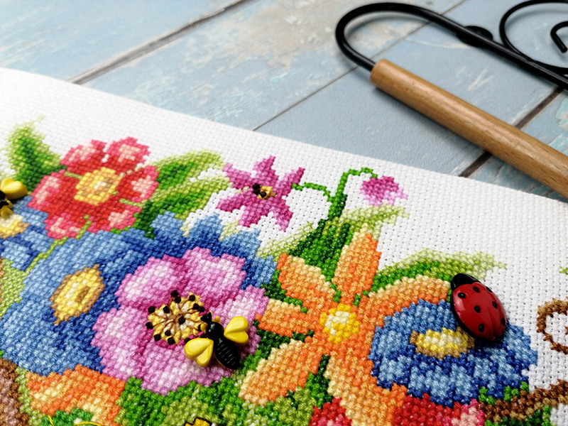 канва Aida 14 ct розовая, мулине Finca 37 цв., пуговицы, игла, инструкция, схема комбинированная
