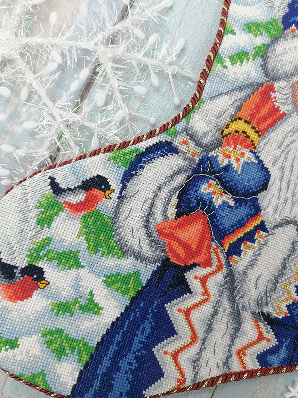 Важная деталь - в набор входит схема алфавита. Это дает возможность написать имя адресата в верхней части сапожка. Все материалы для создания входят в состав набора. К набору прилагается QR код для скачивания схемы для вышивания через электронное приложение.