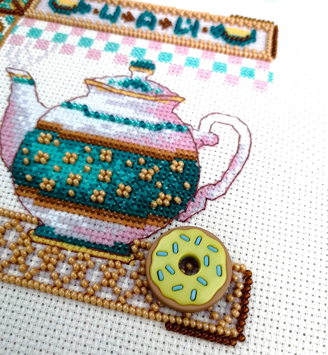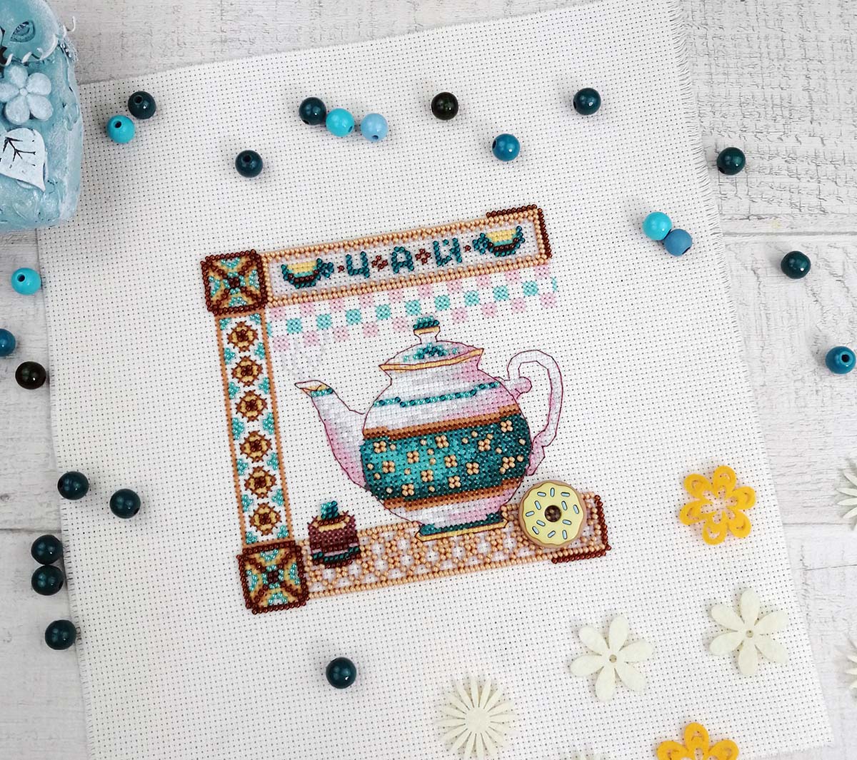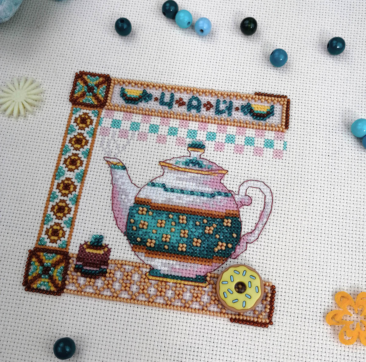 счетный крест + частичная вышивка бисером