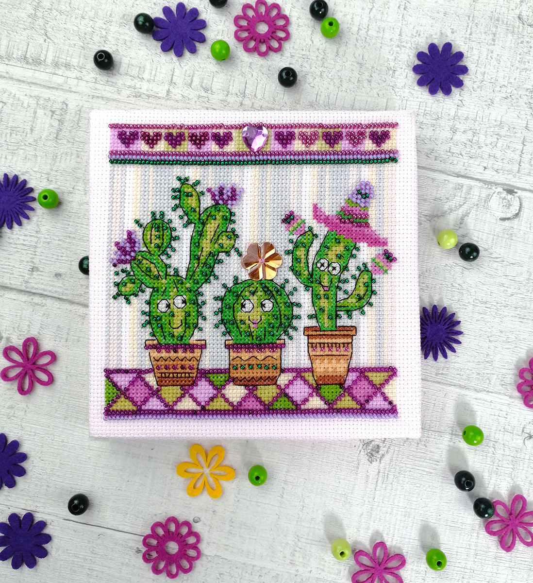 счетный крест + частичная вышивка бисером