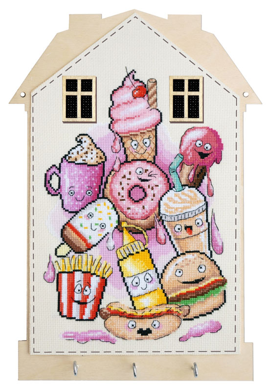 канва Аида 18 ct бежевая, мулине Finca 26 цв., деревянная рама, декоративные окна, крючки, игла, инструкция