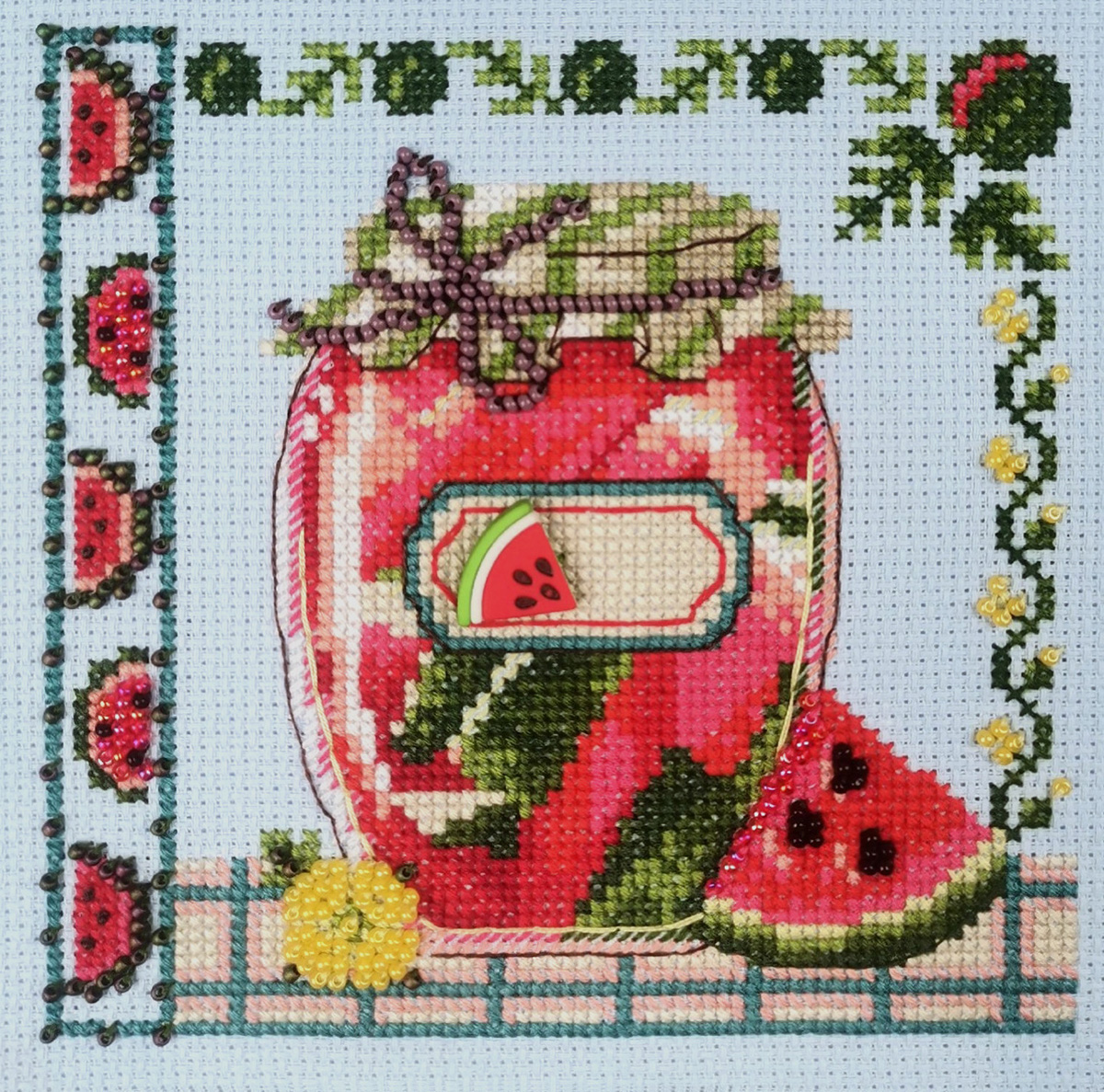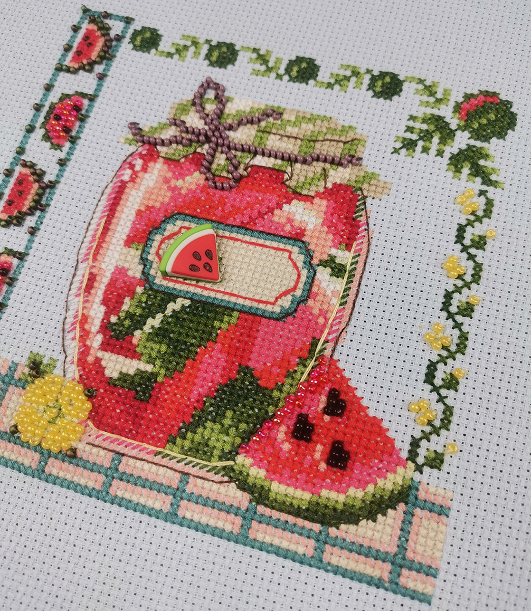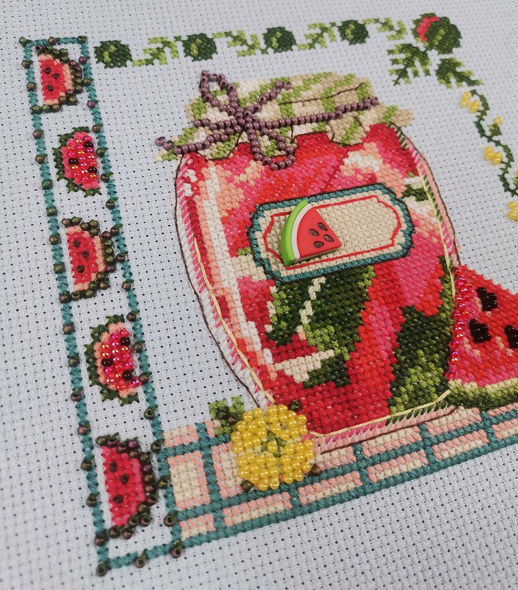 счетный крест + частичная вышивка бисером