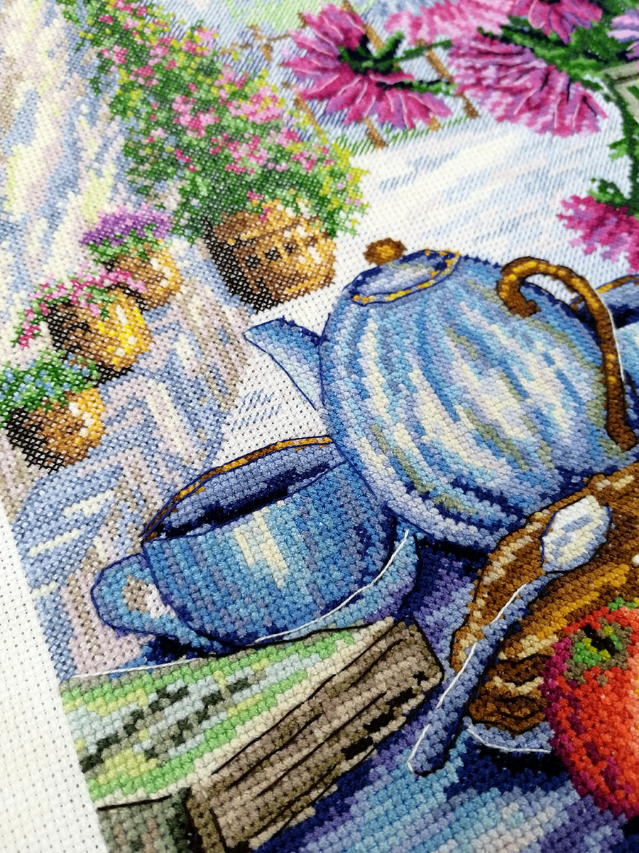канва Aida 16 ct молочная, мулине Finca 49 цв., игла, инструкция, схема комбинированная