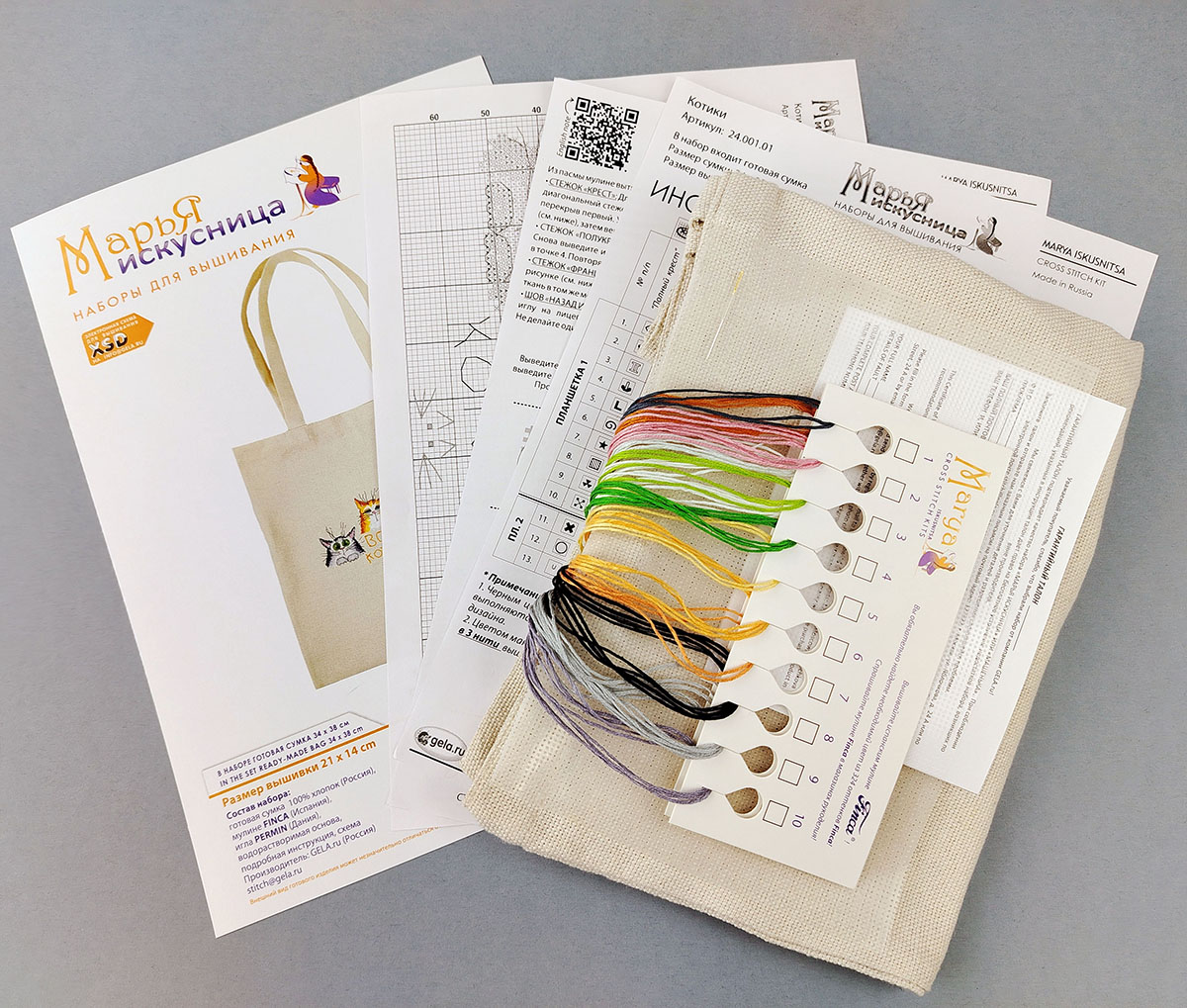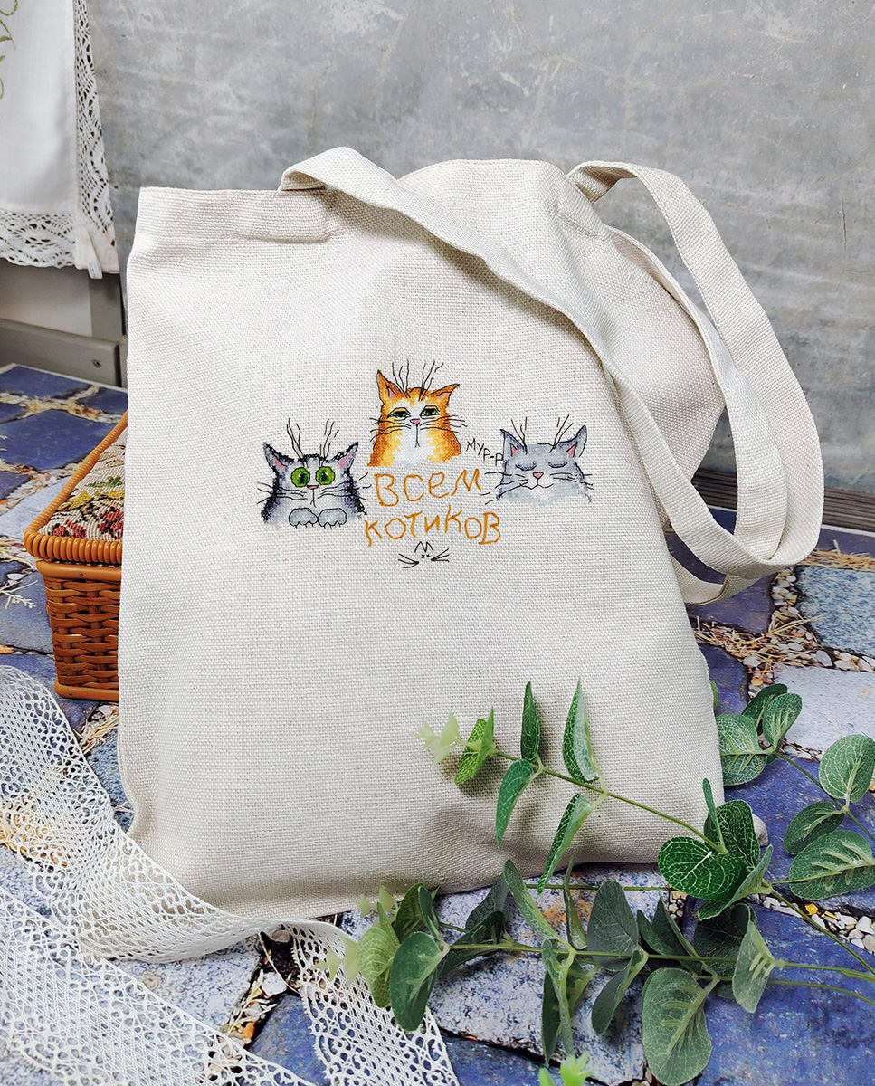 В набор входят все комплектующие для вышивания и готовая сумка 100% хлопок 34 х 38 см ручка 64 см. Ткань - двунитка небеленая, плотность 220 гр.
