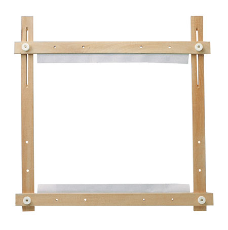 Рамка для вышивания гобеленов, плоская, материал – полированный бук, регулируемый размер, с тканой лентой для крепления гобеленов.