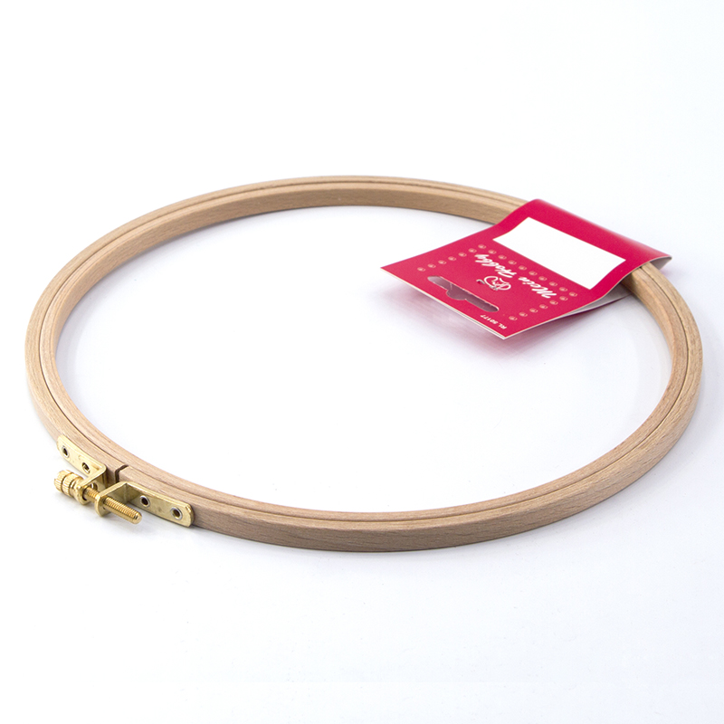 Пяльцы изготовлены из 3-х слойного клееного полированного бруса (бука), имеют латунный винт для надежного закрепления ткани в пяльцах.