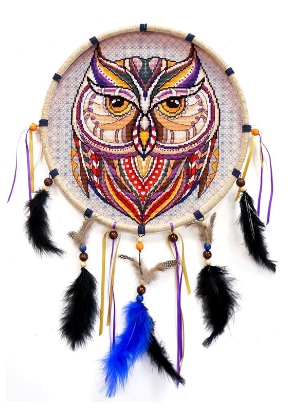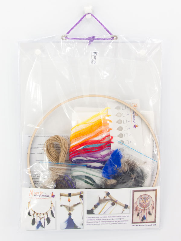 канва Линда 27 ct бежевая, мулине Finca 24 цв., игла, бусины, шнуры, перья, клей, инструкция