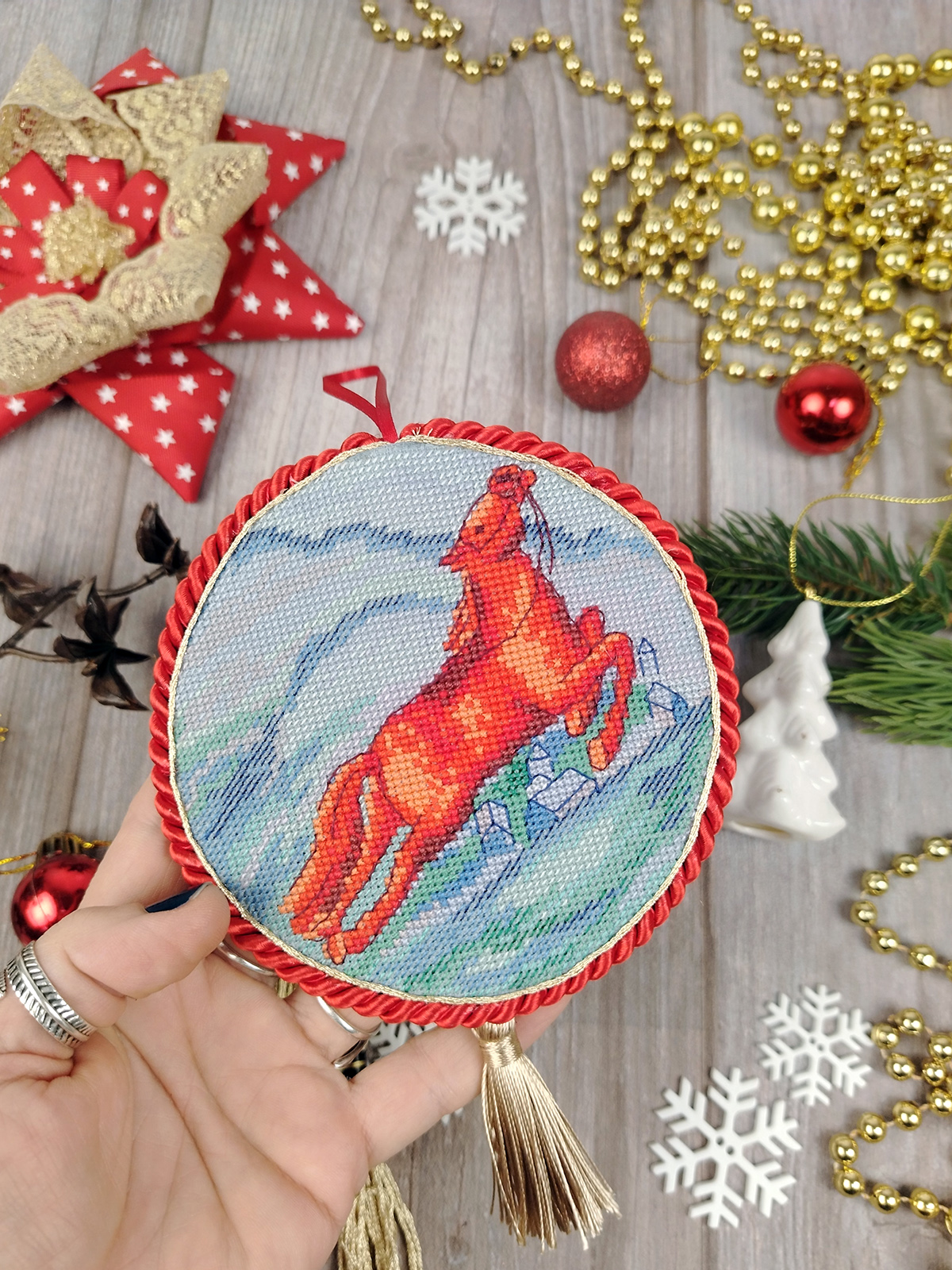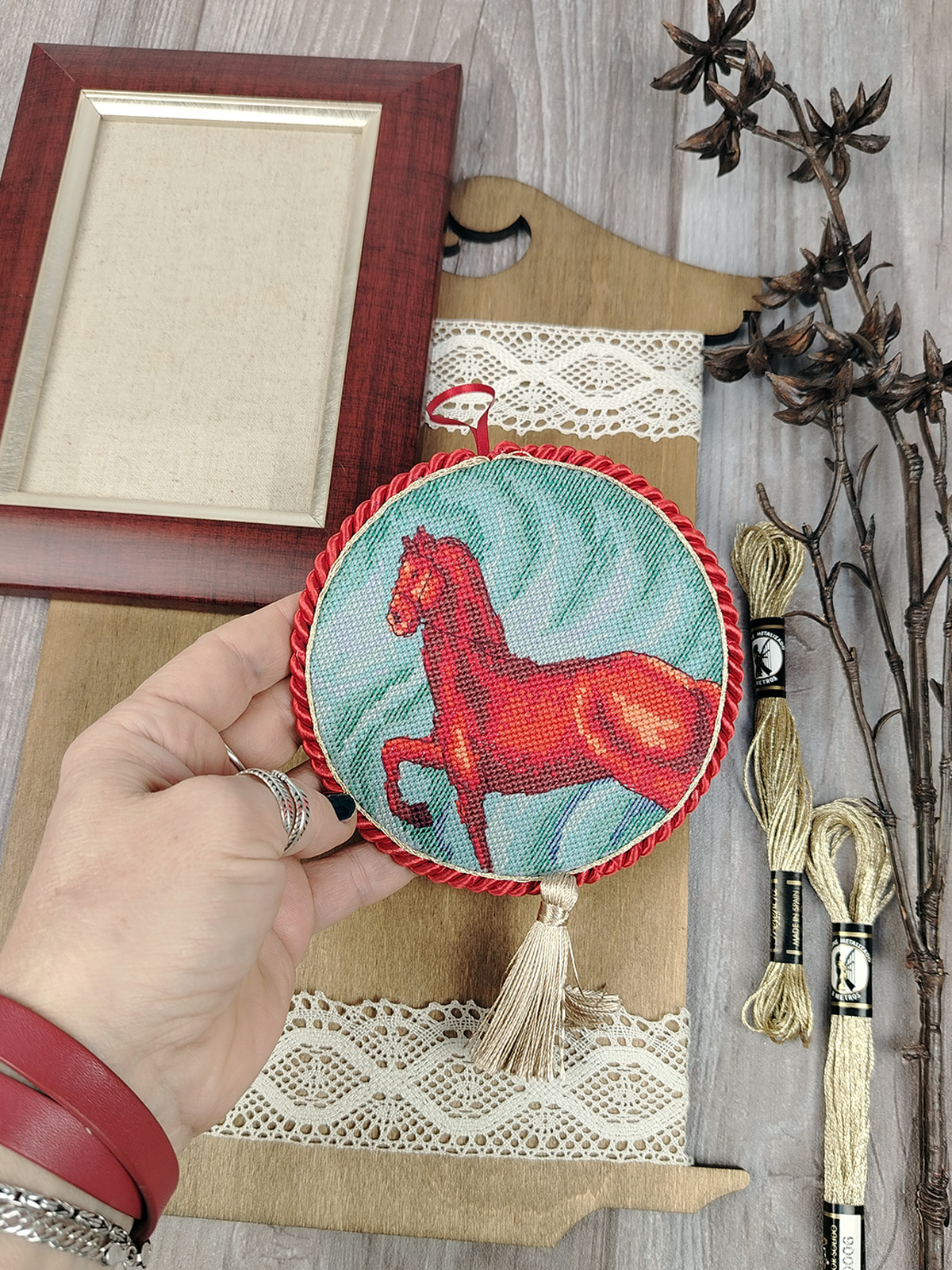 Размер вышивки: 12 х 24 см. Размер готового пинкипа: Д = 11 см
