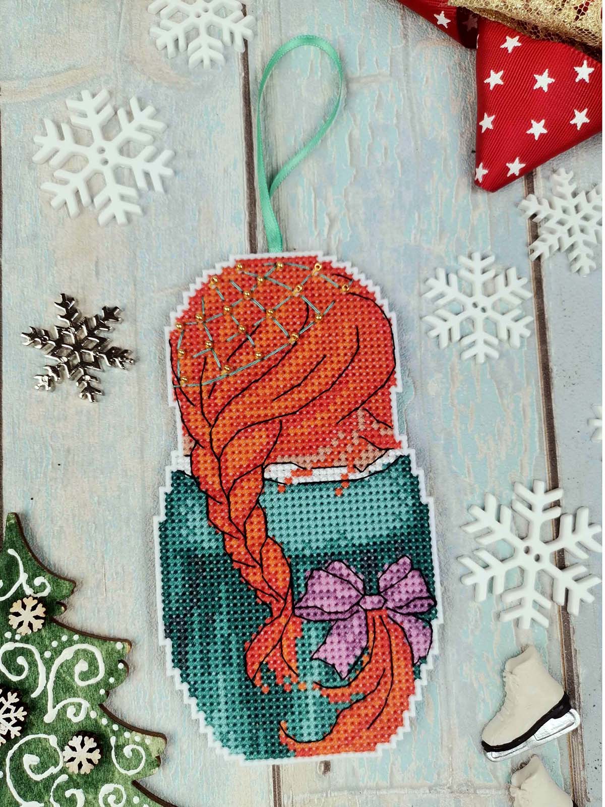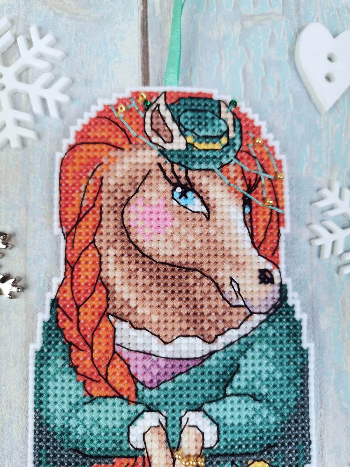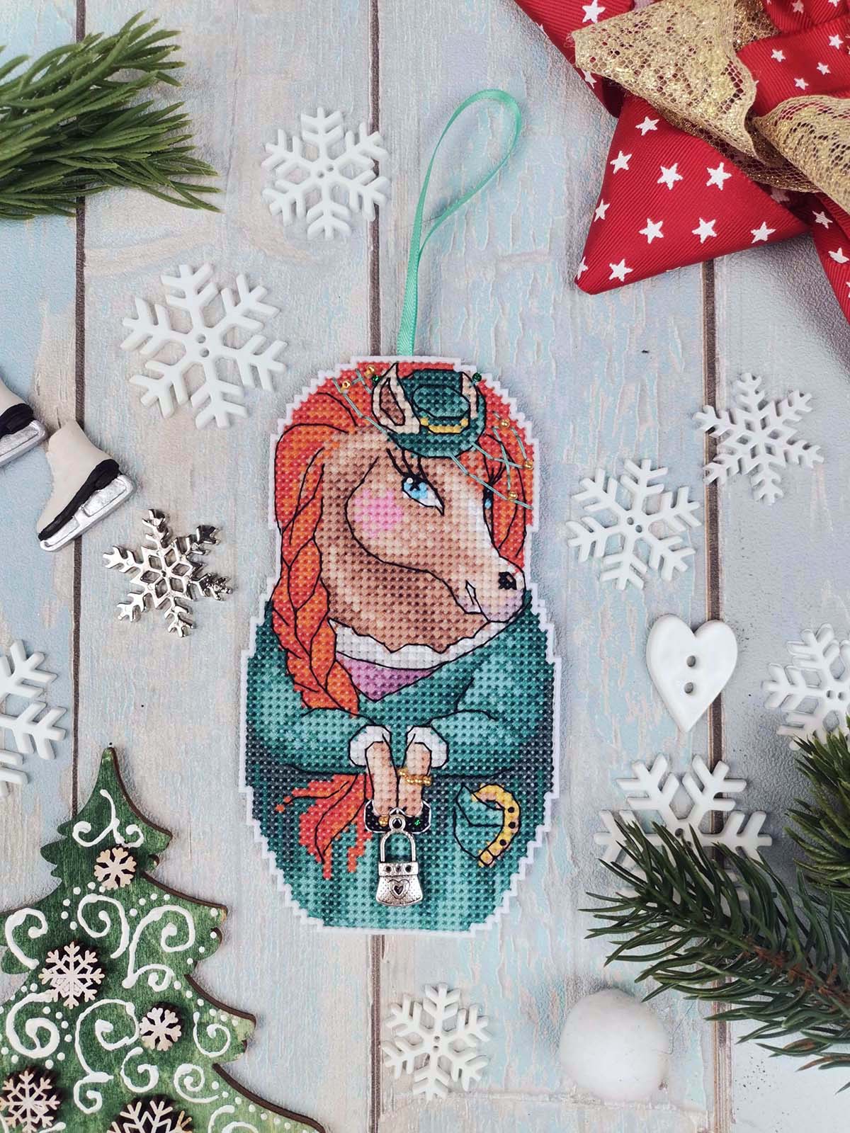 Канва пластиковая белая, мулине Finca 20 цв.,бисер, игла, инструкция, тесьма, схема черно-белая. В наборе одна игрушка 7х13см
