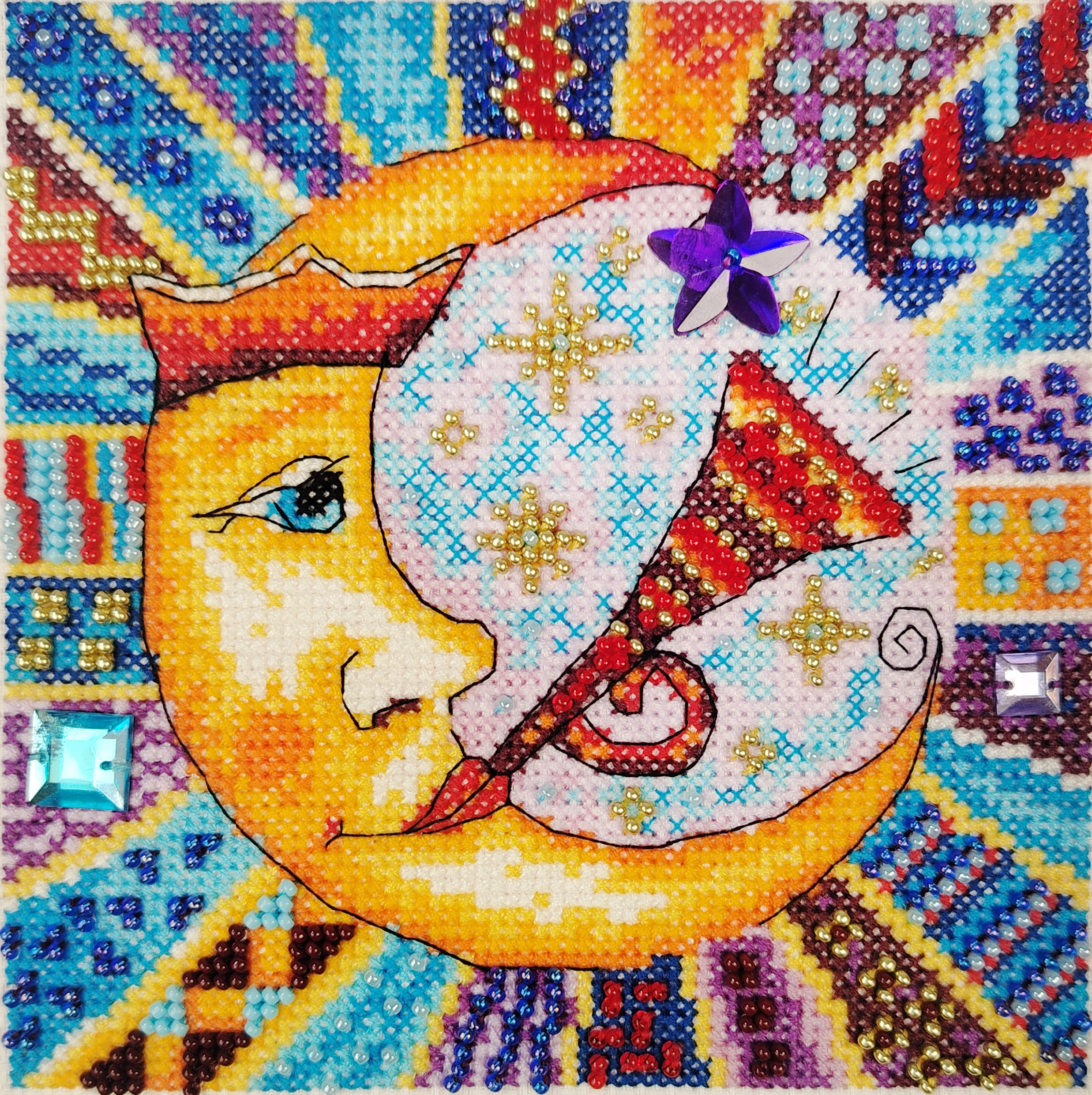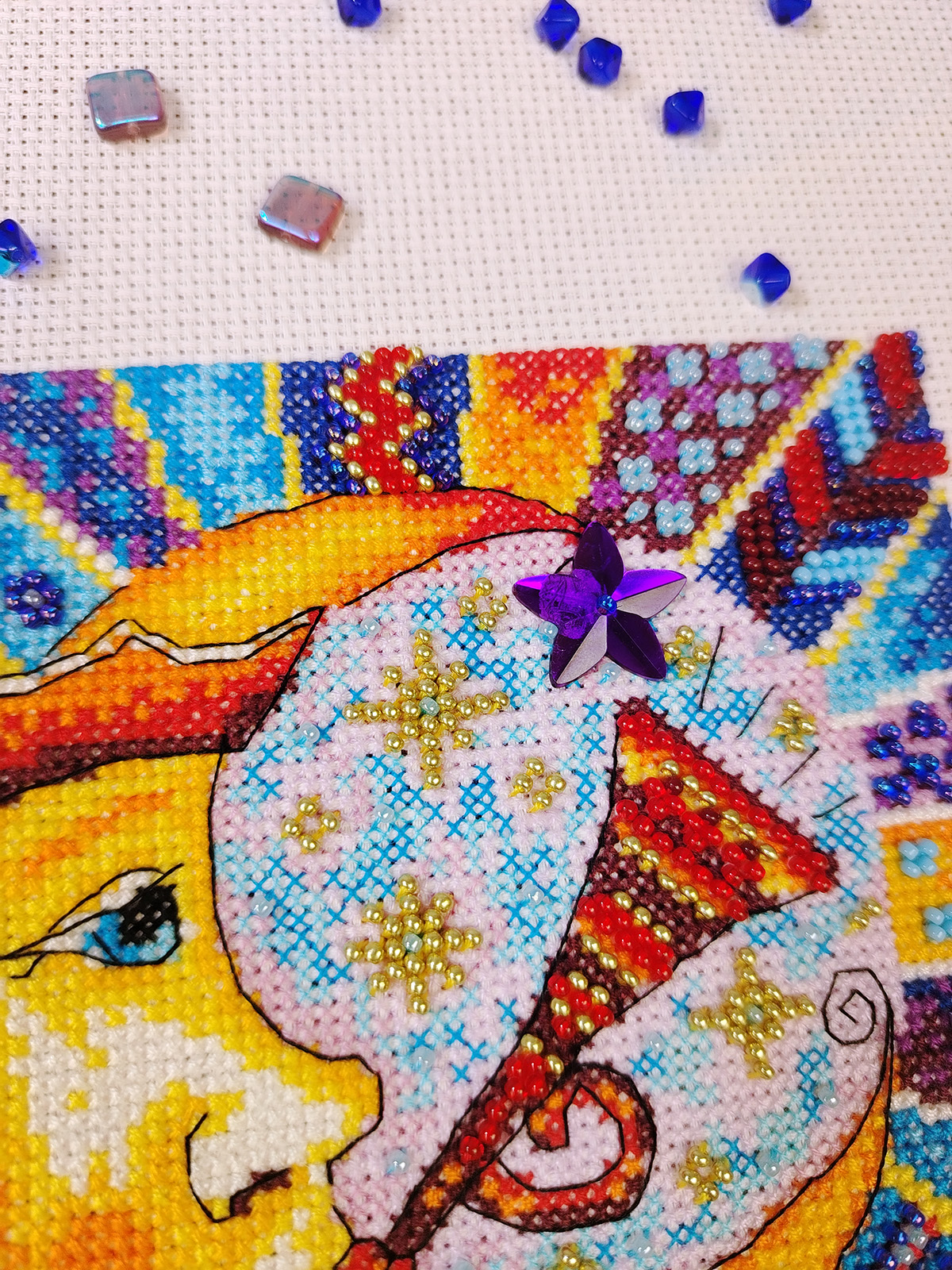 счетный крест + частичная вышивка бисером