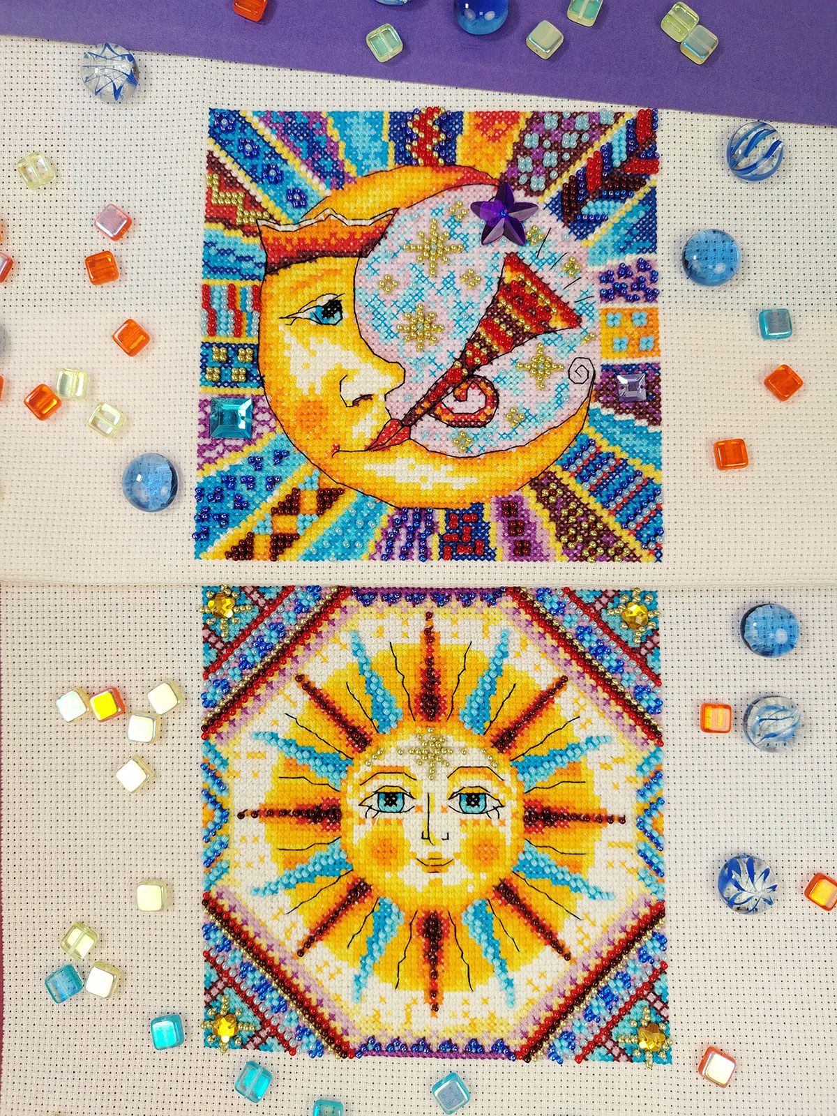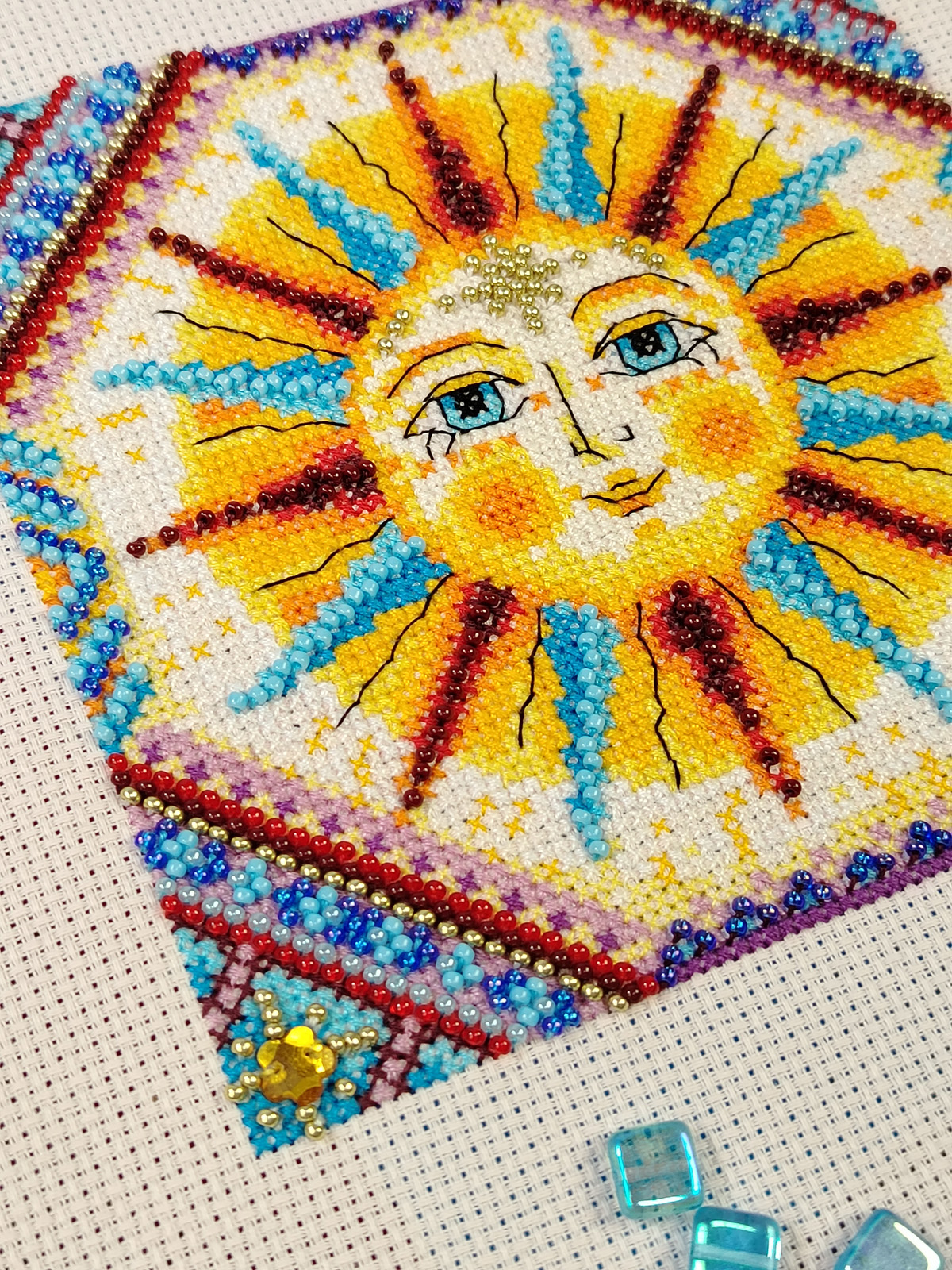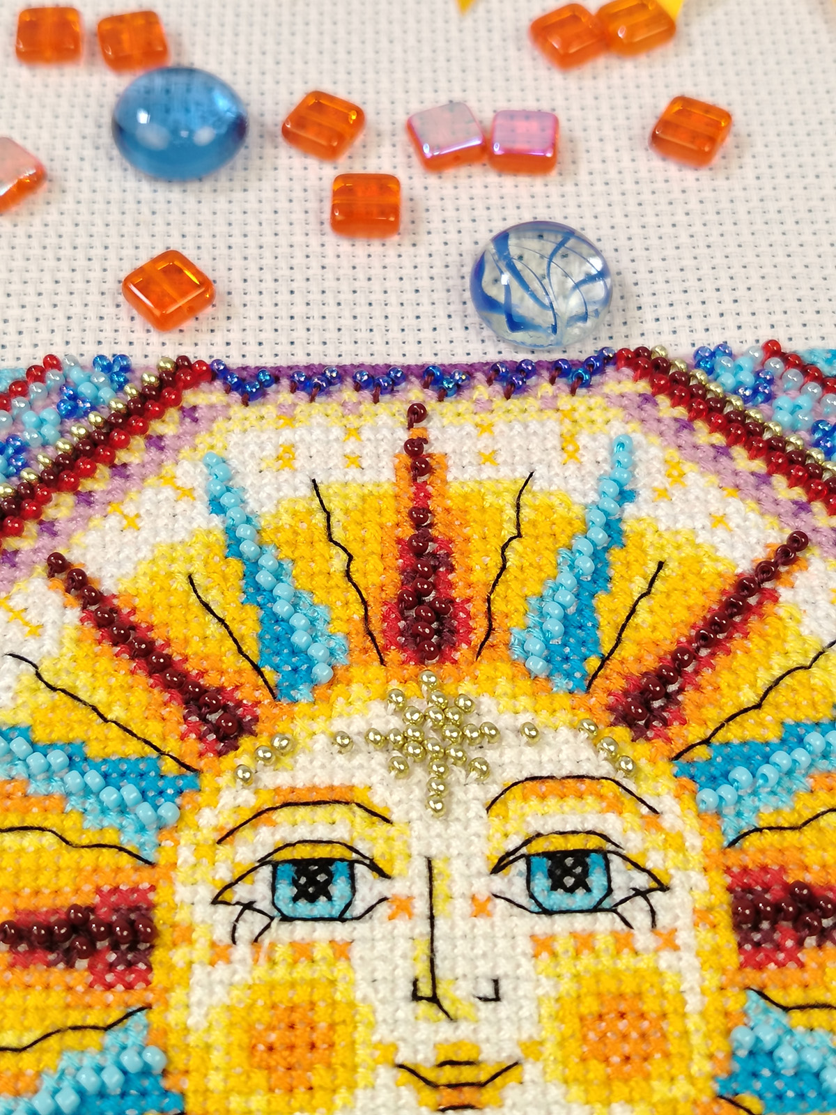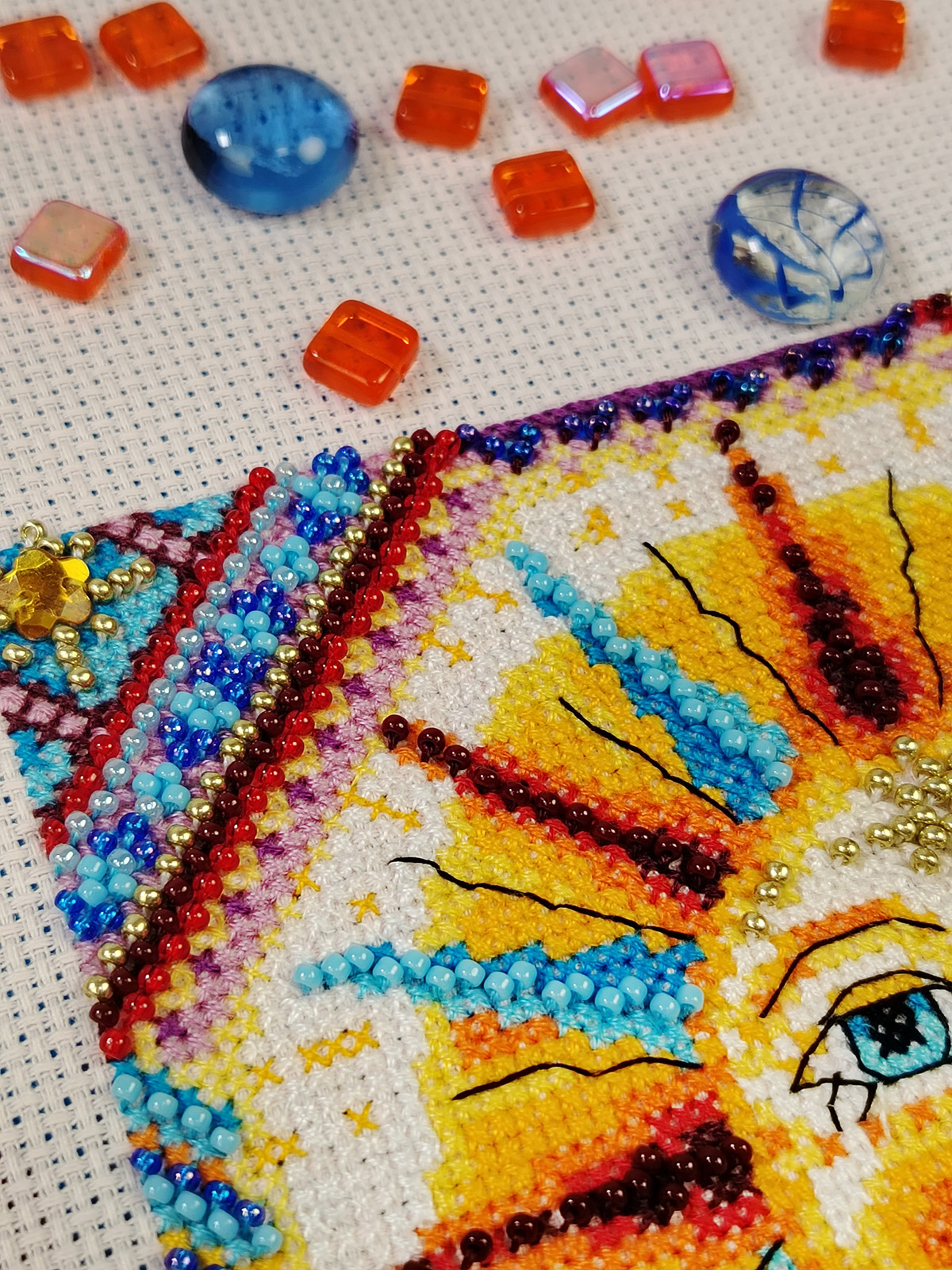 счетный крест + частичная вышивка бисером