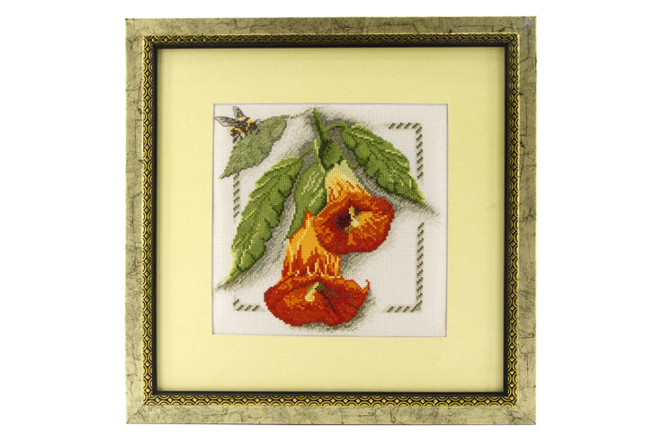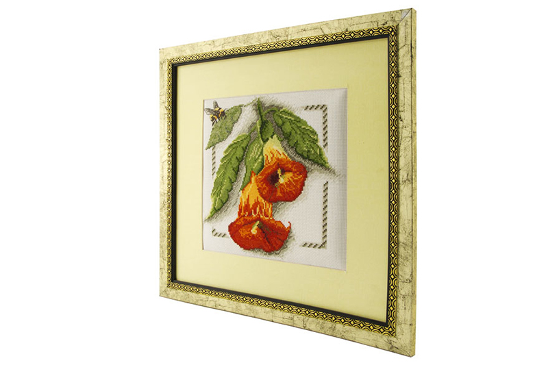 Готовая вышитая картина, оформленная в багет с паспарту. При вышивании использовались только высококачественные материалы.