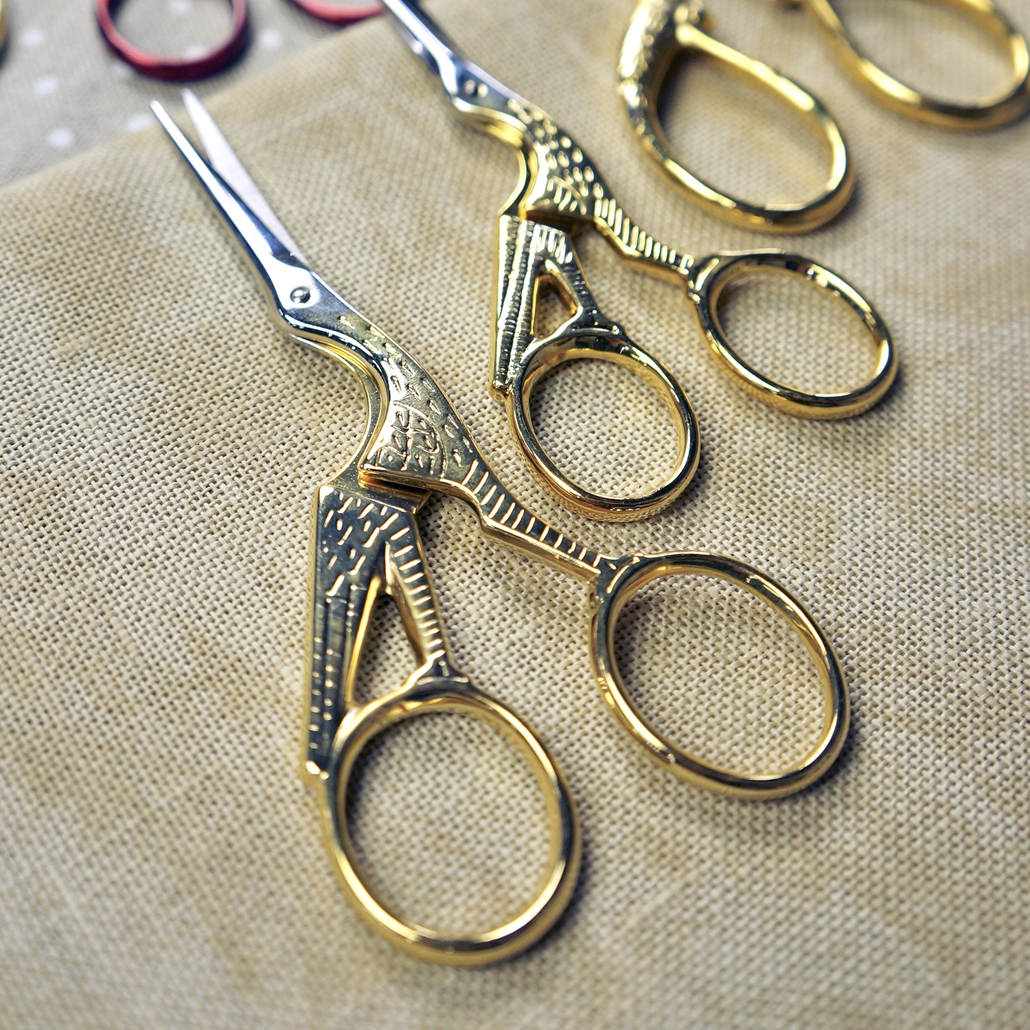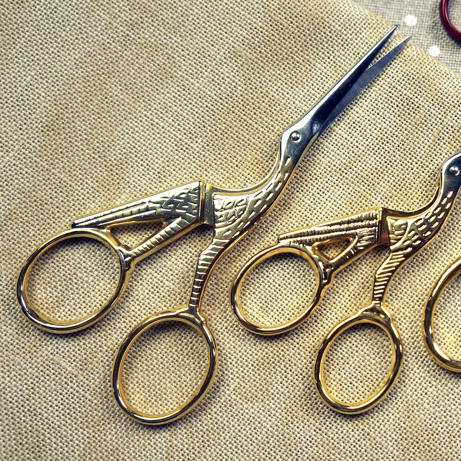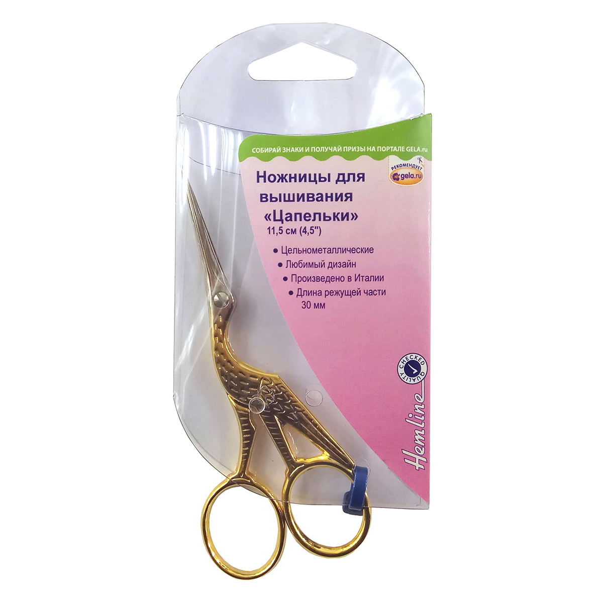 Ножницы цельнометаллические классического дизайна "Цапельки". Цвет блестящий золотистый. Предназначены для подрезки нитей в процессе работы с вышивкой, имеют заостренные тонкие кончики. Длина режущей части 30 мм.