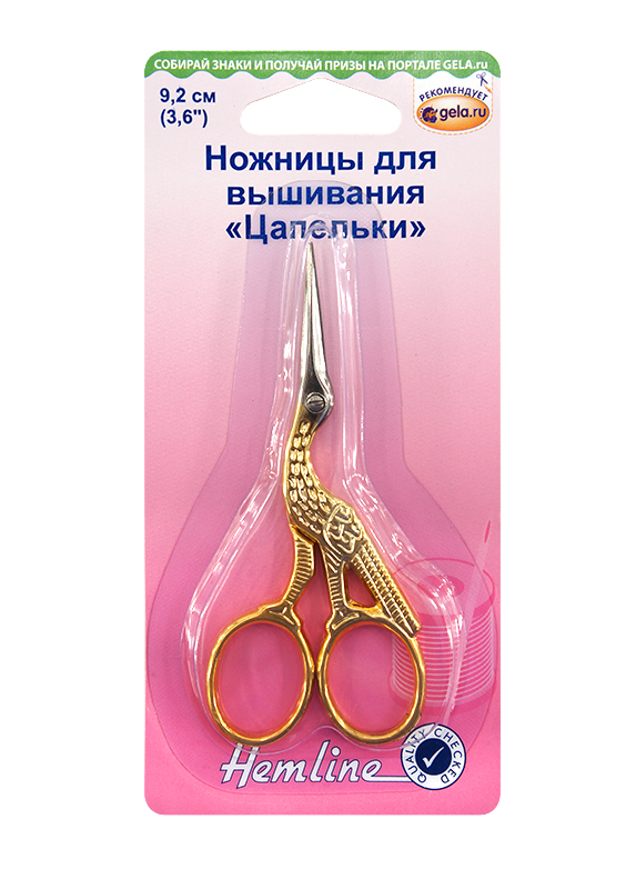 Ножницы цельнометаллические классического дизайна "Цапельки". Цвет блестящий золотистый. Предназначены для подрезки нитей в процессе работы с вышивкой, имеют заостренные тонкие кончики. Длина режущей части 20 мм. Произведено в Италии.