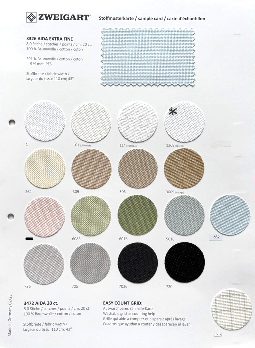 Цветовая карта Aida Extra Fine Zweigart. Арт 3326/8001