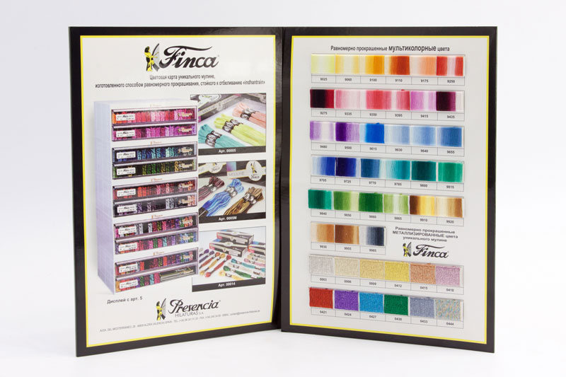 Карты испольлзуются для работы с розничными клиентами в магазине, так как сами мулине Finca Presencia Hilaturas S.A. находятся в закрытом стенде. Это помогает сохранить мулине в чистоте, а также уберечь его от пропажи.