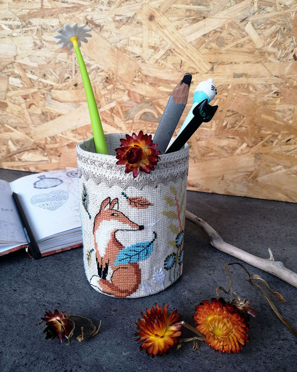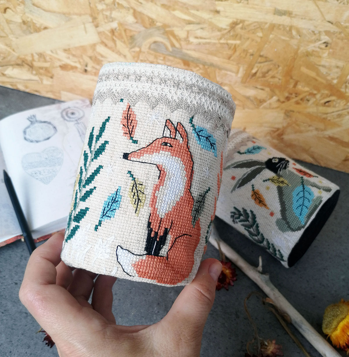 Лиса одно из самых распространенных животных. Лисы есть почти везде. Самым распространенным видом является лиса обыкновенная. Лисы на нашем дизайне не совсем обычные. Они вышитые ) Такую несложную и стилизованную вышивку можно использовать для создания подставки для карандашей.