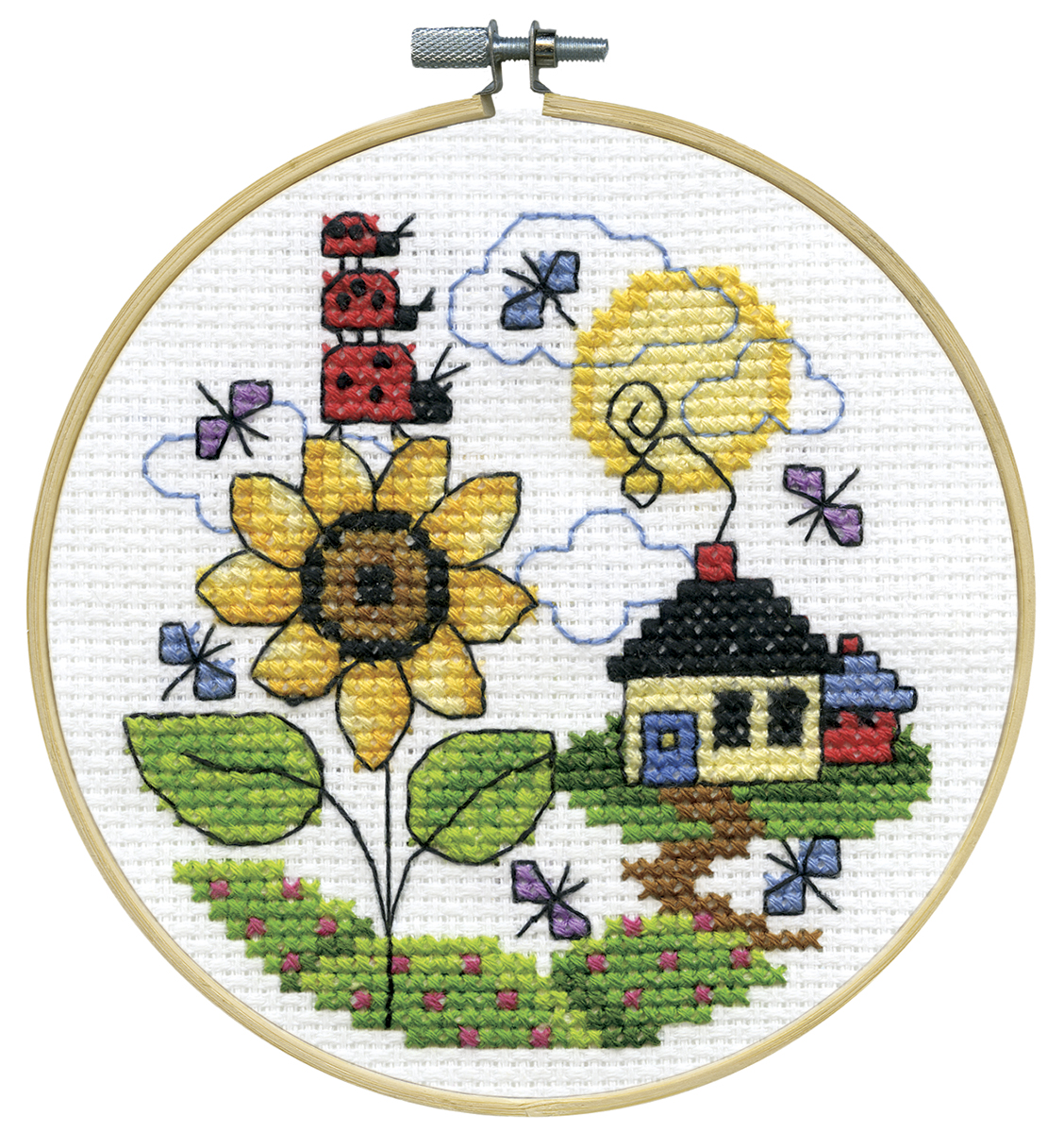 канва Aida 14 ct, мулине, пяльца (диаметр 8 см), игла, схема, инструкция