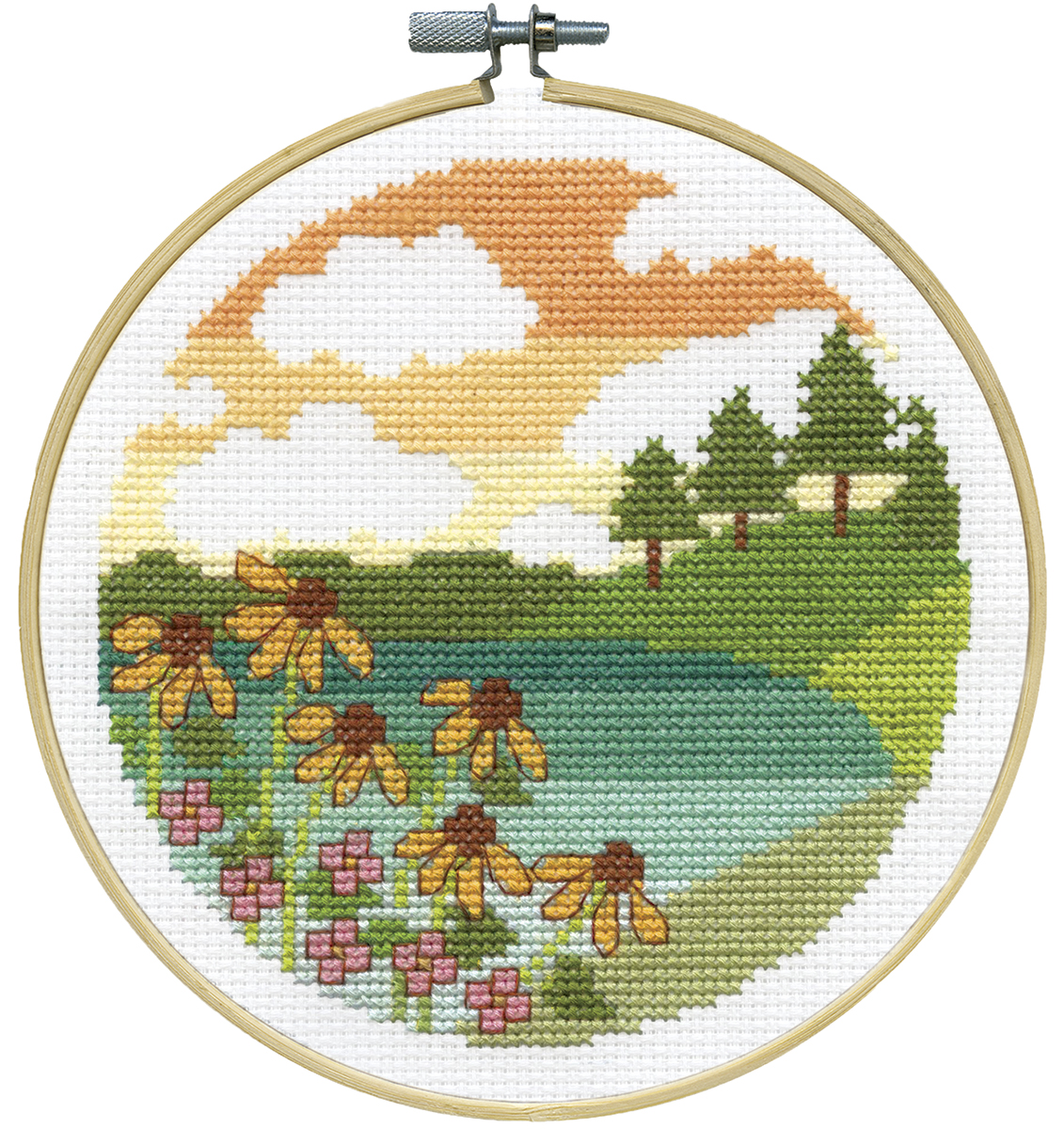 канва Aida 11 ct, мулине, пяльца (диаметр 20 см), игла, схема, инструкция