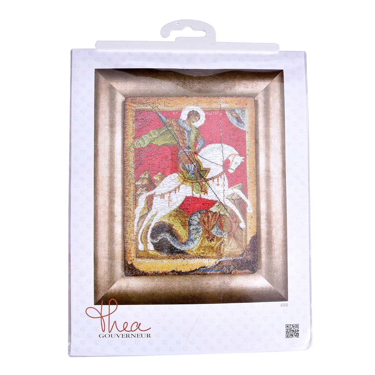 Наборы Thea Gouverneur укомплектованы качественными материалами, такими как мулине DMC из 100% хлопка и разные виды тканей для вышивания производства Zweigart. Наборы обозначенные буквой А после номера содержат в составе канву Aida, если в артикуле есть обозначение .05 – то этот набор укомплектован канвой Aida чёрного цвета. Также в ассортименте есть наборы на 100% льне и канве Jobelan. Черно-белые схемы тщательно прорабатываются вручную. Используется богатая цветовая палитра ниток, но в ассортименте компании есть и монохромные дизайны. Нитки разобраны по символам и закреплены на органайзере. Стрелка на бумажном органайзере указывает вверх, определяя правильность чтения символов.