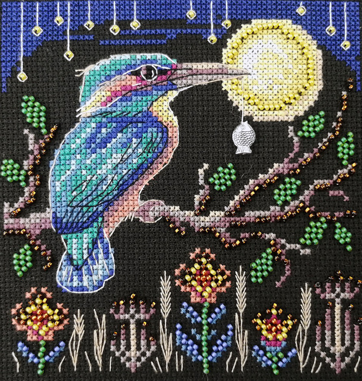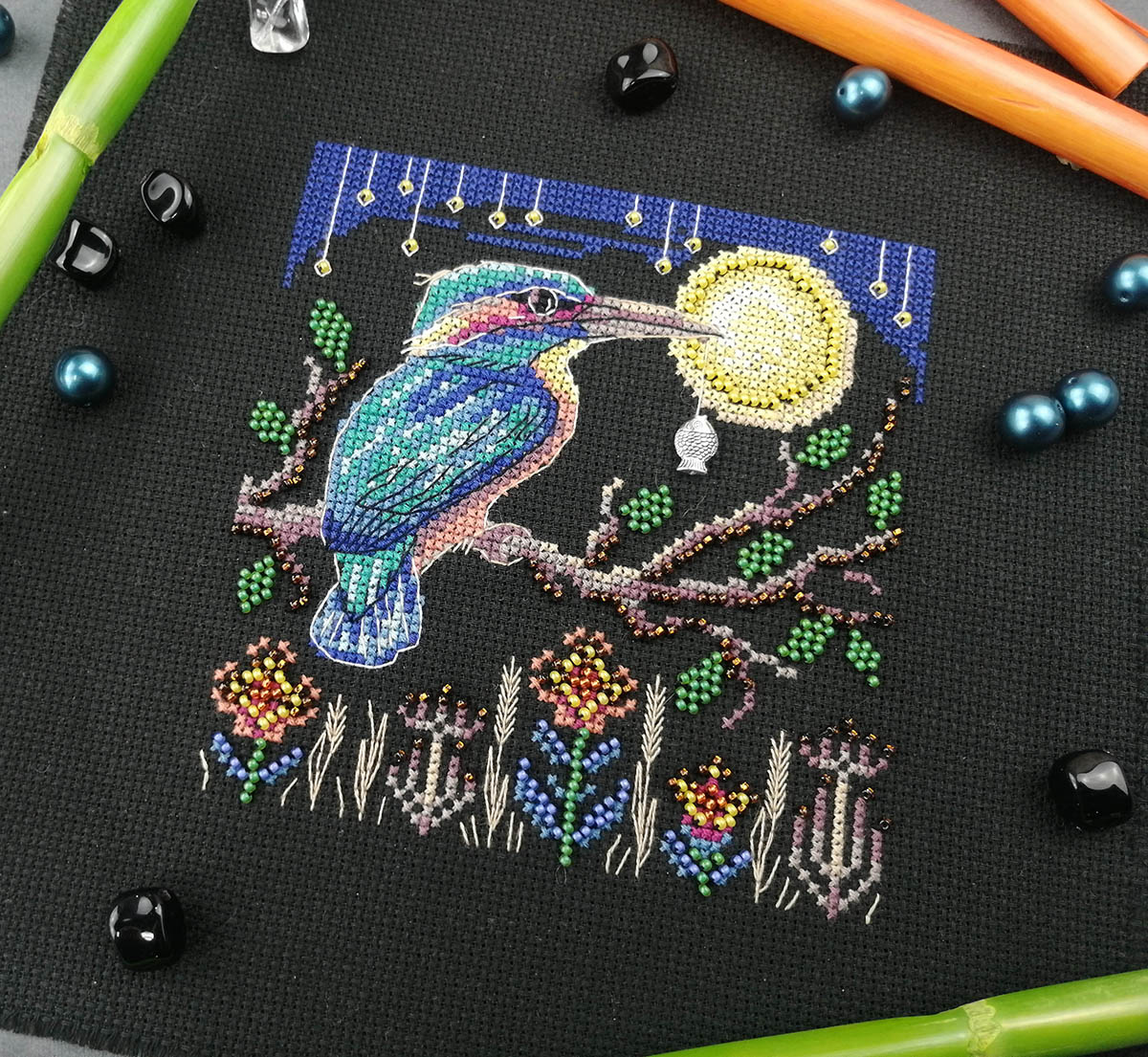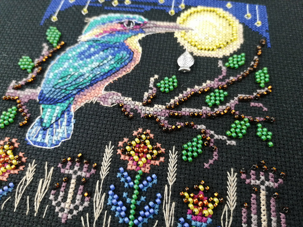 счетный крест + частичная вышивка бисером