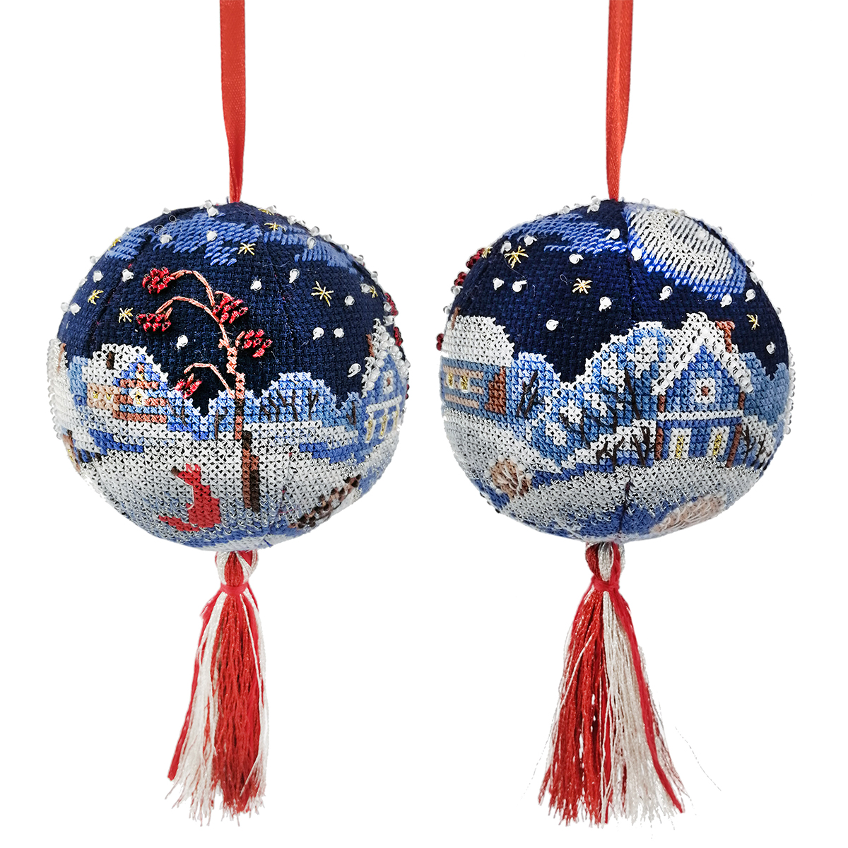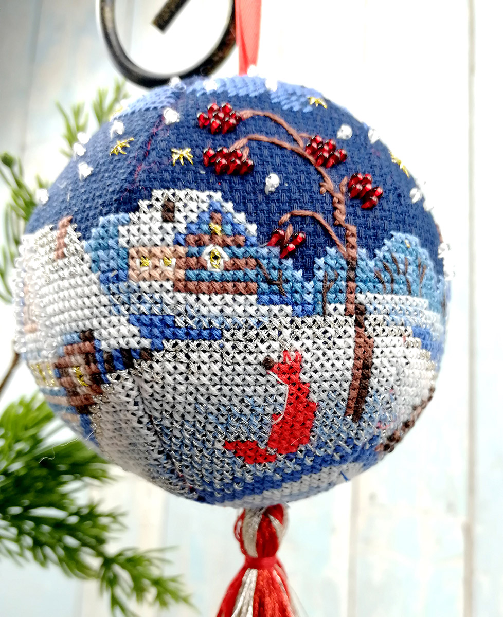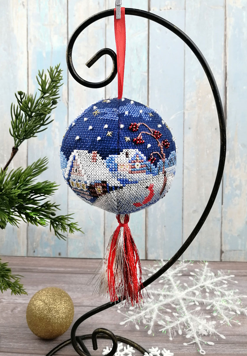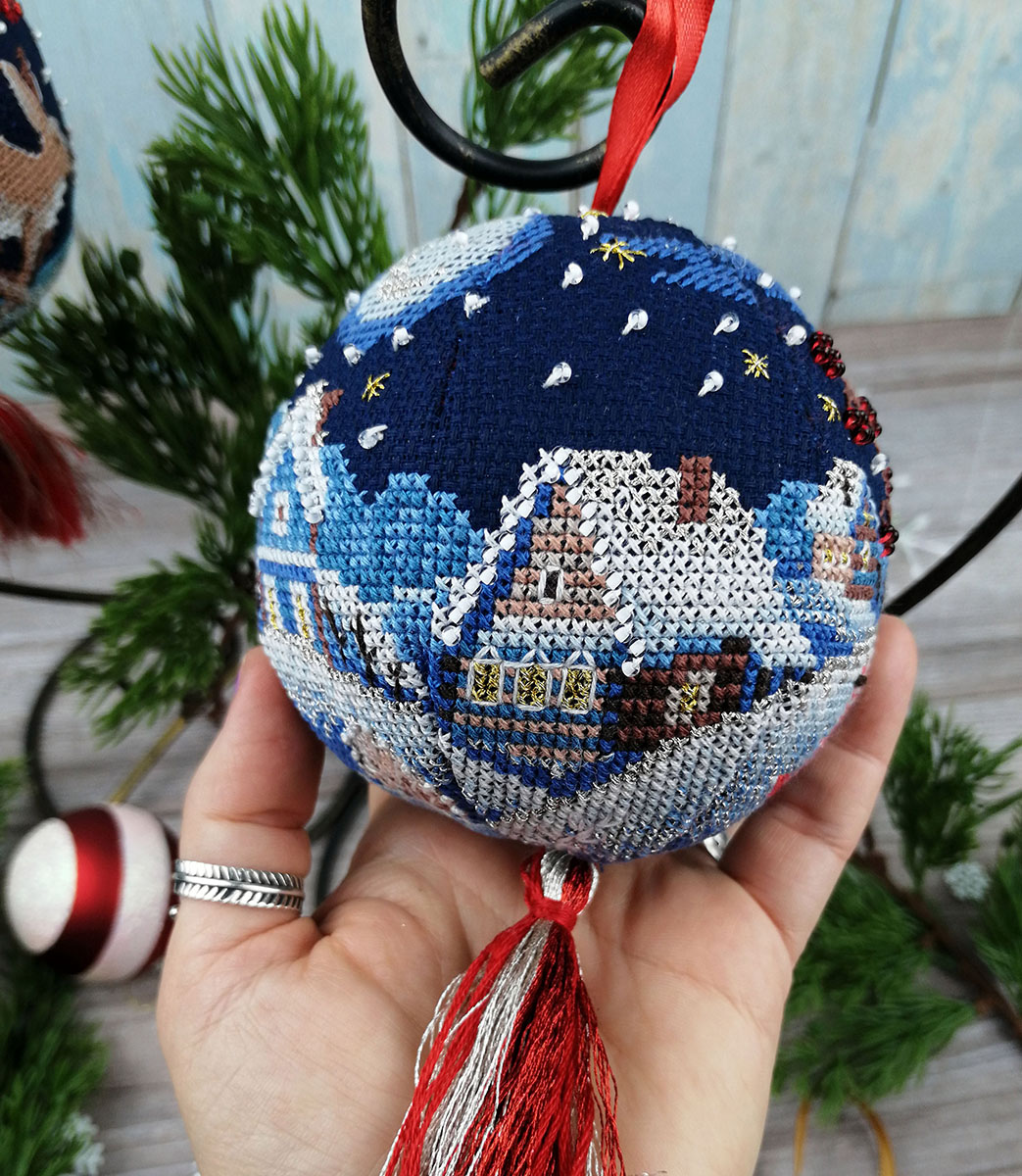 Вышитый, новогодний шар, а почему бы и нет? – подумали мы. Что может лучше украсить вашу семейную ёлку, чем игрушка хранящая тепло ваших рук! Забавный сюжет, зимнее настроение и главное, этот шарик никогда не разобьется.