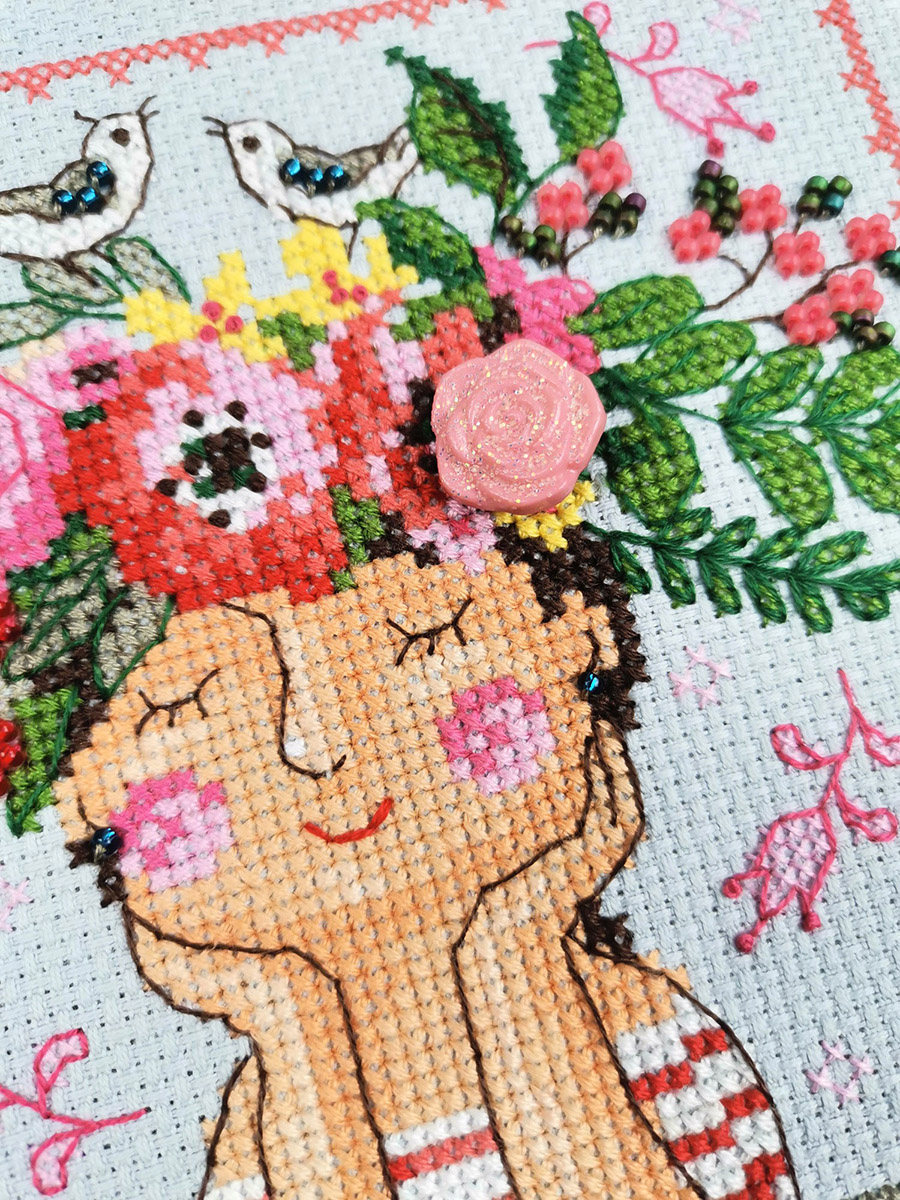 Серию объединяют размер, основа Аида 14ct, частичная вышивка бисером и декоративные пришивные элементы. Мулине Finca не разобраны на планшетки, а связаны узелком. Схема и инструкция черно-белая. Электронная схема XSD, QR код в наборе, указание о наличие схемы - знак на обложке.