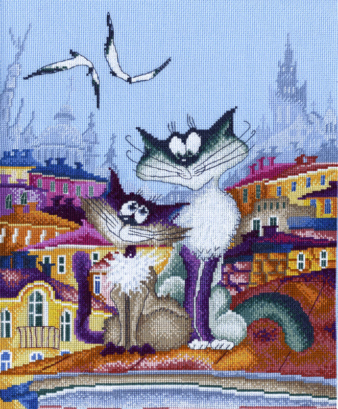 канва Aida 14 голубая, мулине Finca 33 цв, игла, инструкция