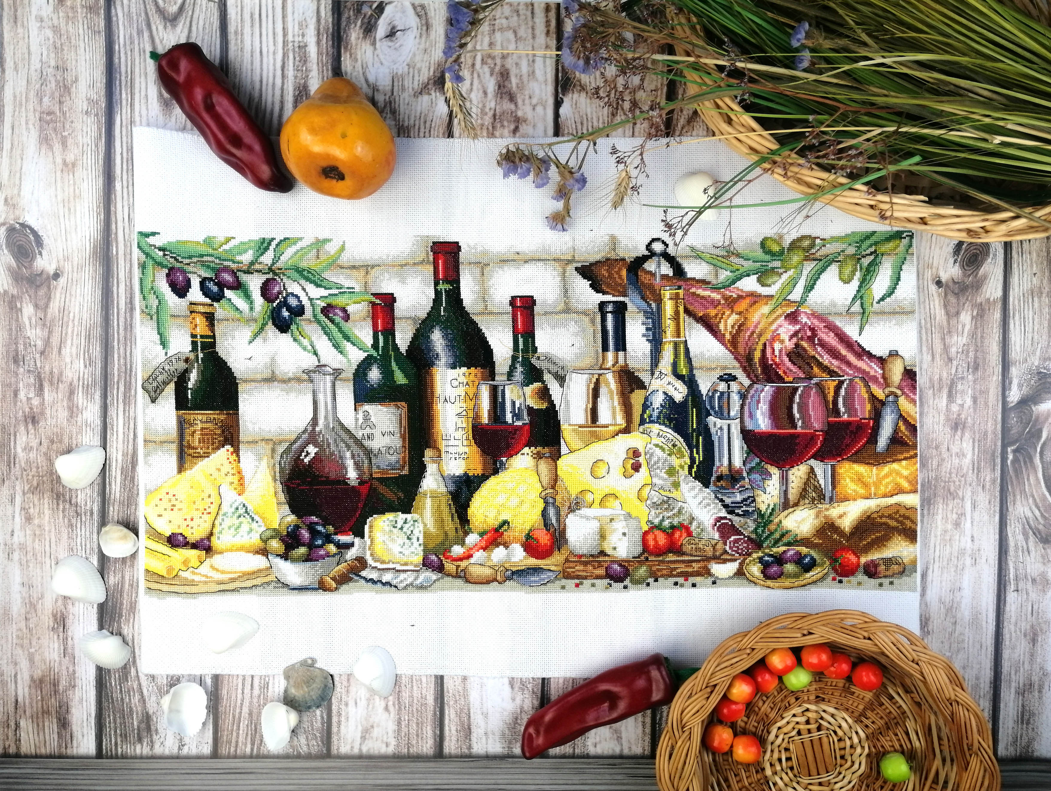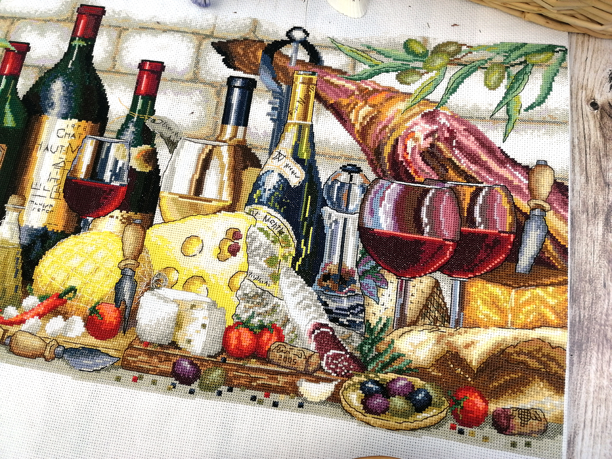 канва Aida 16 ct молочная, мулине Finca 58 цв., игла, инструкция, схема комбинированная