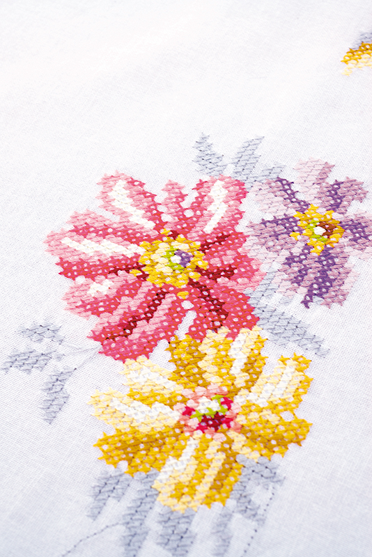 готовая скатерть 100% хлопок с напечатанным рисунком, нити для вышивания, игла, инструкция, схема