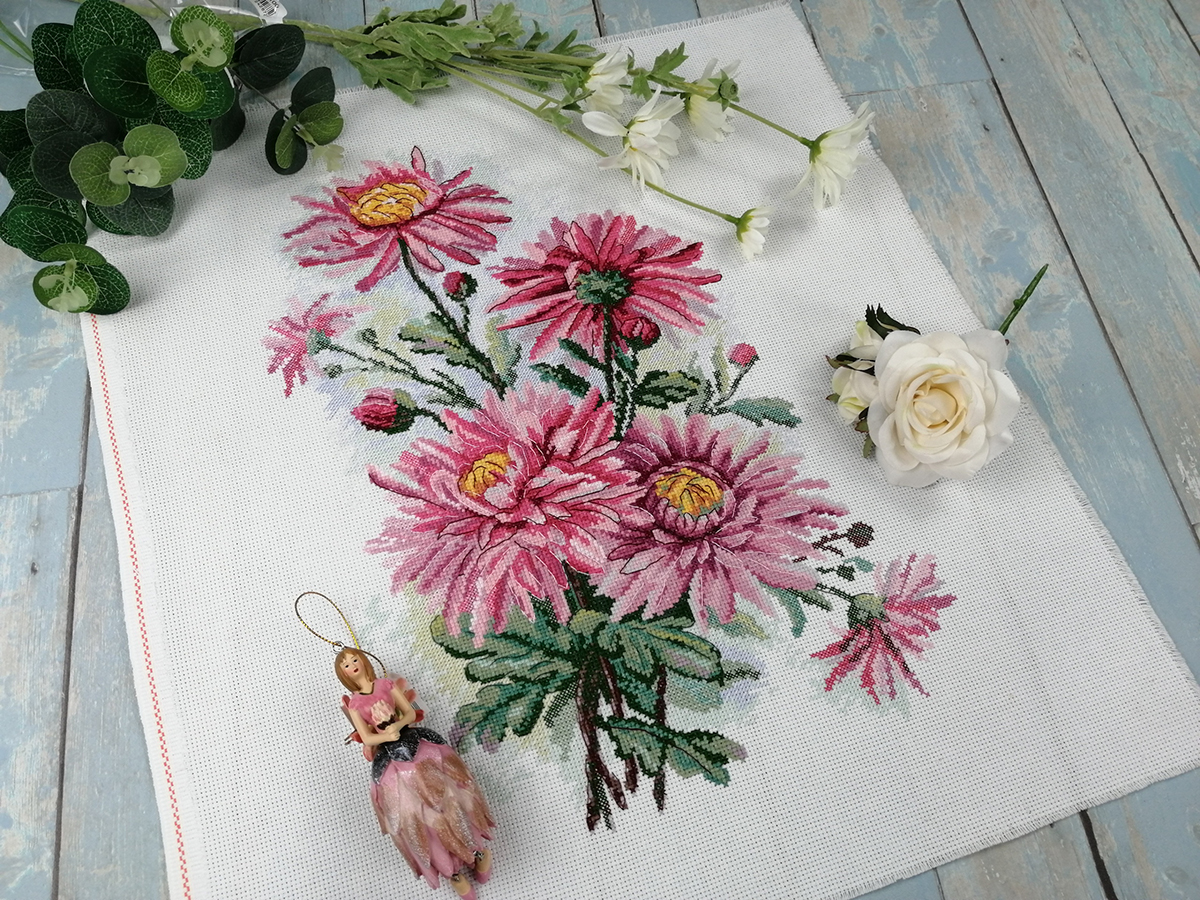 Канва Aida 14 ct молочная, мулине Finca 27 цв., игла, инструкция, схема черно-белая
