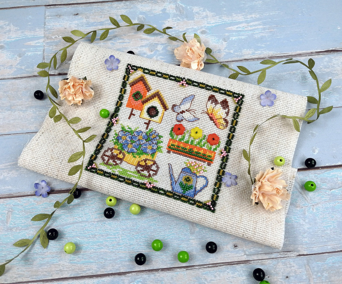 Серию объединяют размер, основа Аида 14ct, частичная вышивка бисером и декоративные пришивные элементы. Мулине Finca не разобраны на планшетки, а связаны узелком. Схема и инструкция черно-белая. Электронная схема XSD, QR код в наборе, указание о наличие схемы - знак на обложке.