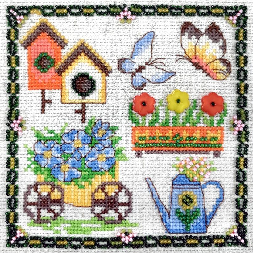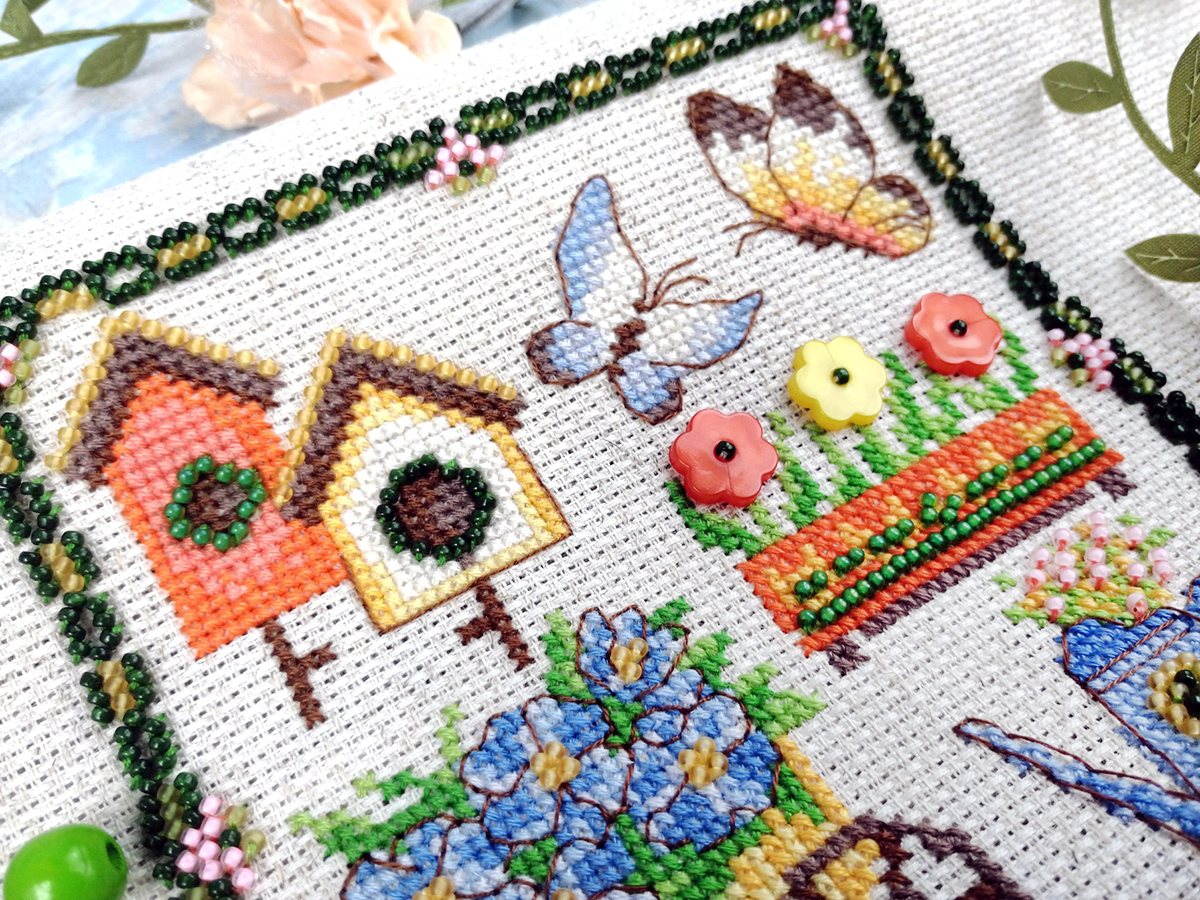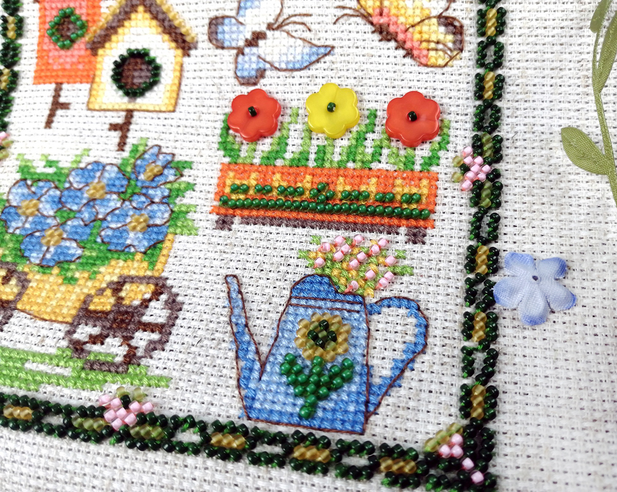 счетный крест + частичная вышивка бисером