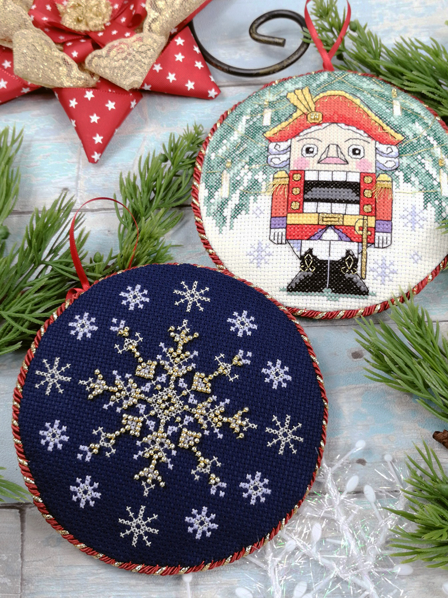 канва Aida 14 ct бежевая и темно-синяя, мулине Finca 17 цв., игла, декоративный шнур, лента, бисер, инструкция, схема черно-белая