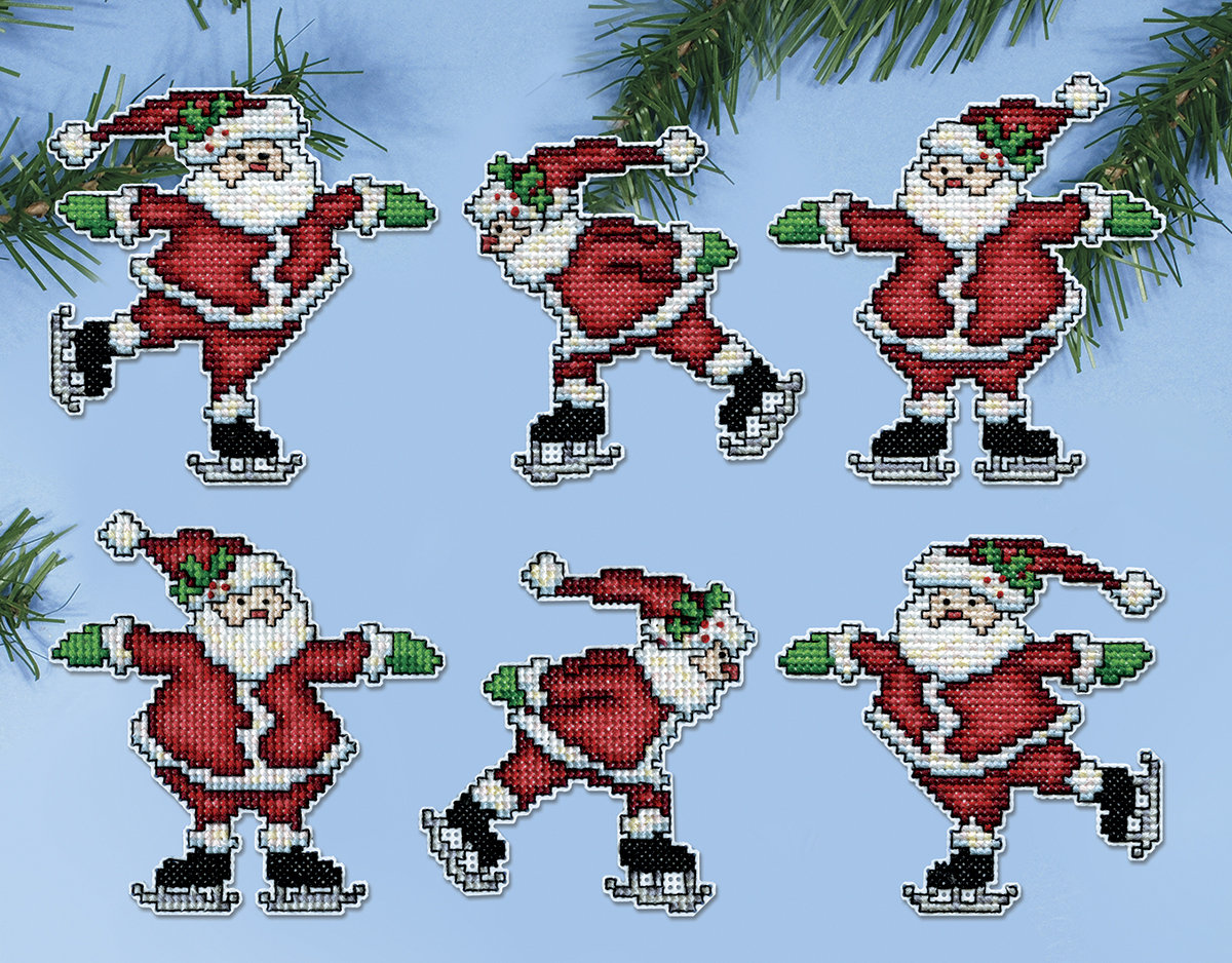 —Набор для вышивания елочных украшений "Дед Морозы на коньках". Арт 6877