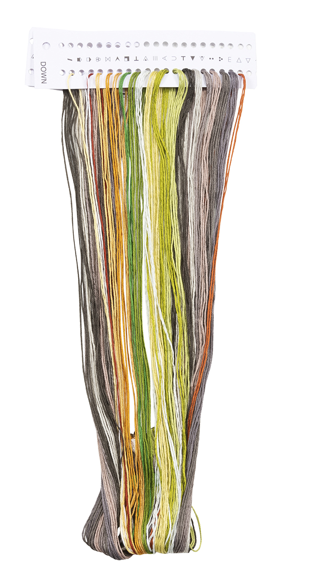Наборы Dutch Stitch Brothers укомплектованы качественными материалами, такими как мулине DMC из 100% хлопка и разные виды тканей для вышивания производства Zweigart. Наборы обозначенные буквой А после номера содержат в составе канву Aida, если в артикуле есть обозначение .05 – то этот набор укомплектован канвой Aida чёрного цвета. Также в ассортименте есть наборы на 100% льне. Черно-белые схемы тщательно прорабатываются вручную. Используется богатая цветовая палитра ниток, но в ассортименте компании есть и монохромные дизайны. Нитки разобраны по символам и закреплены на органайзере. Стрелка на бумажном органайзере указывает вверх, определяя правильность чтения символов.