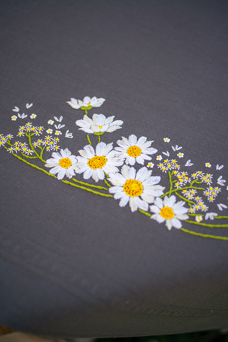 готовая скатерть 100% хлопок с напечатанным рисунком, нити для вышивания, игла, инструкция, схема