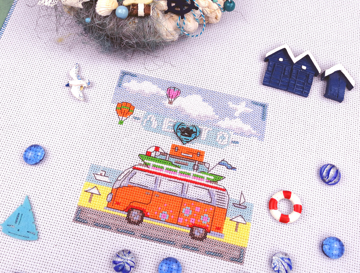 счетный крест + частичная вышивка бисером