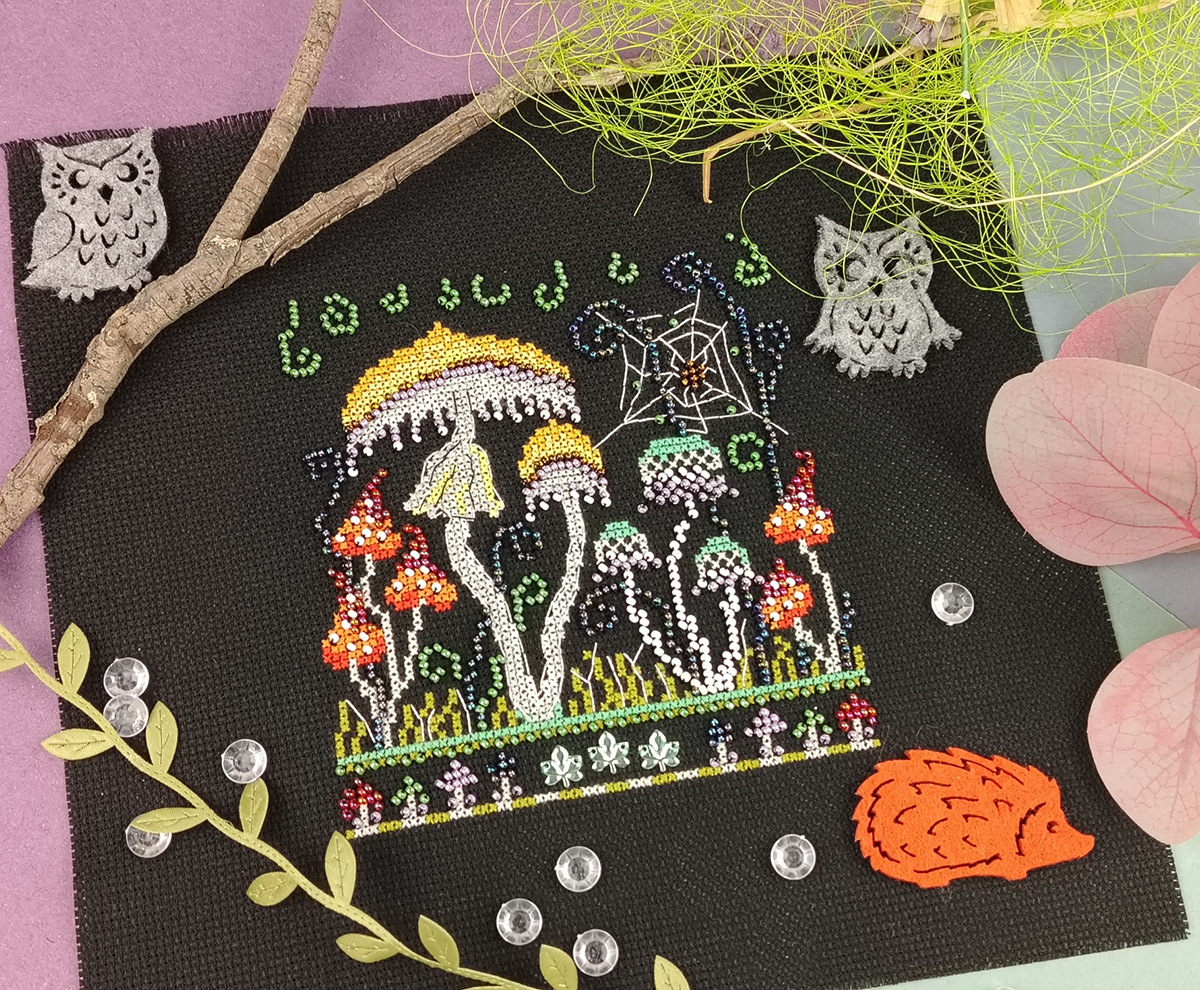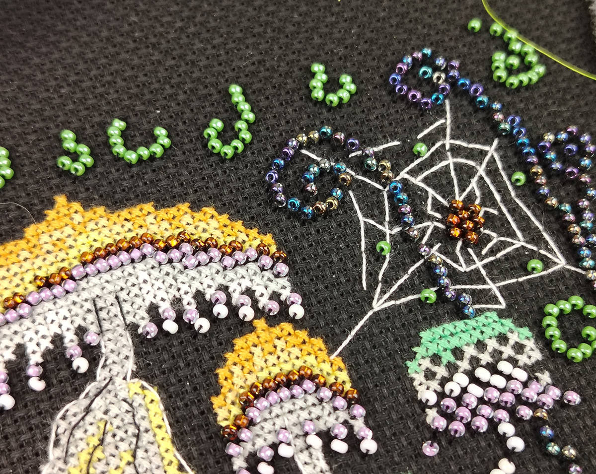 счетный крест + частичная вышивка бисером
