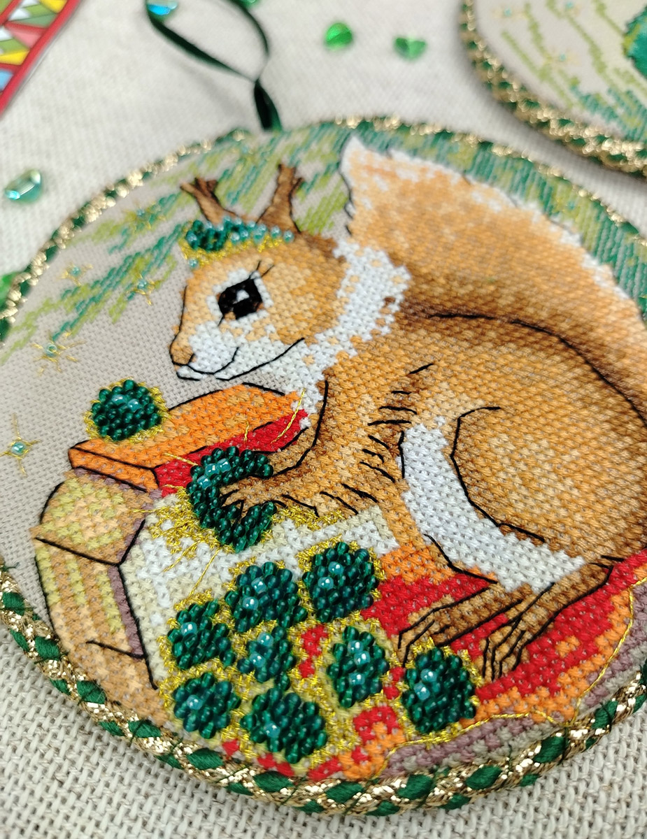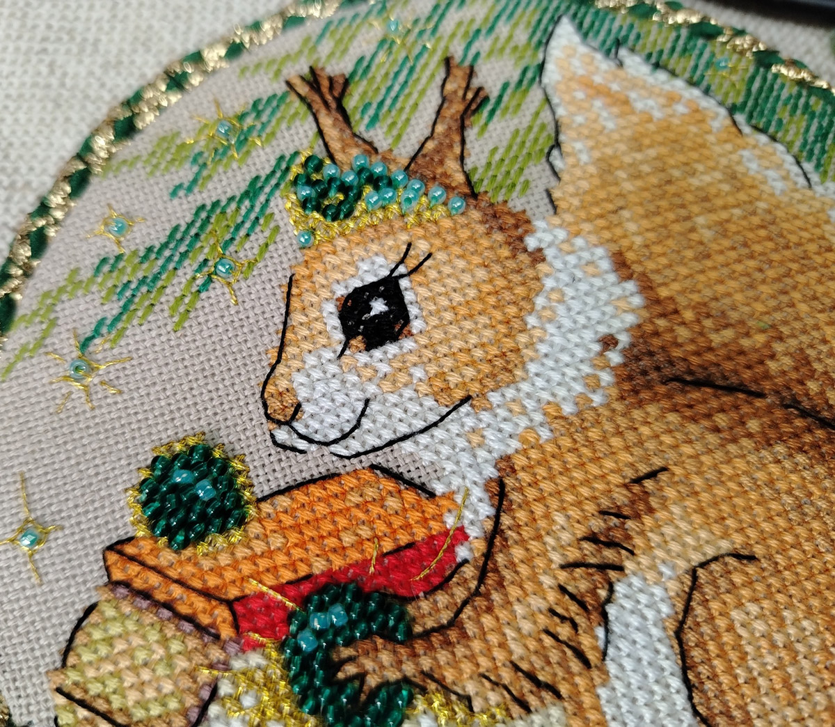 канва Linda 27 ct темно-бежевая, мулине Finca 20 цв., шнур, тесьма, бисер, игла, инструкция, схема комбинированная