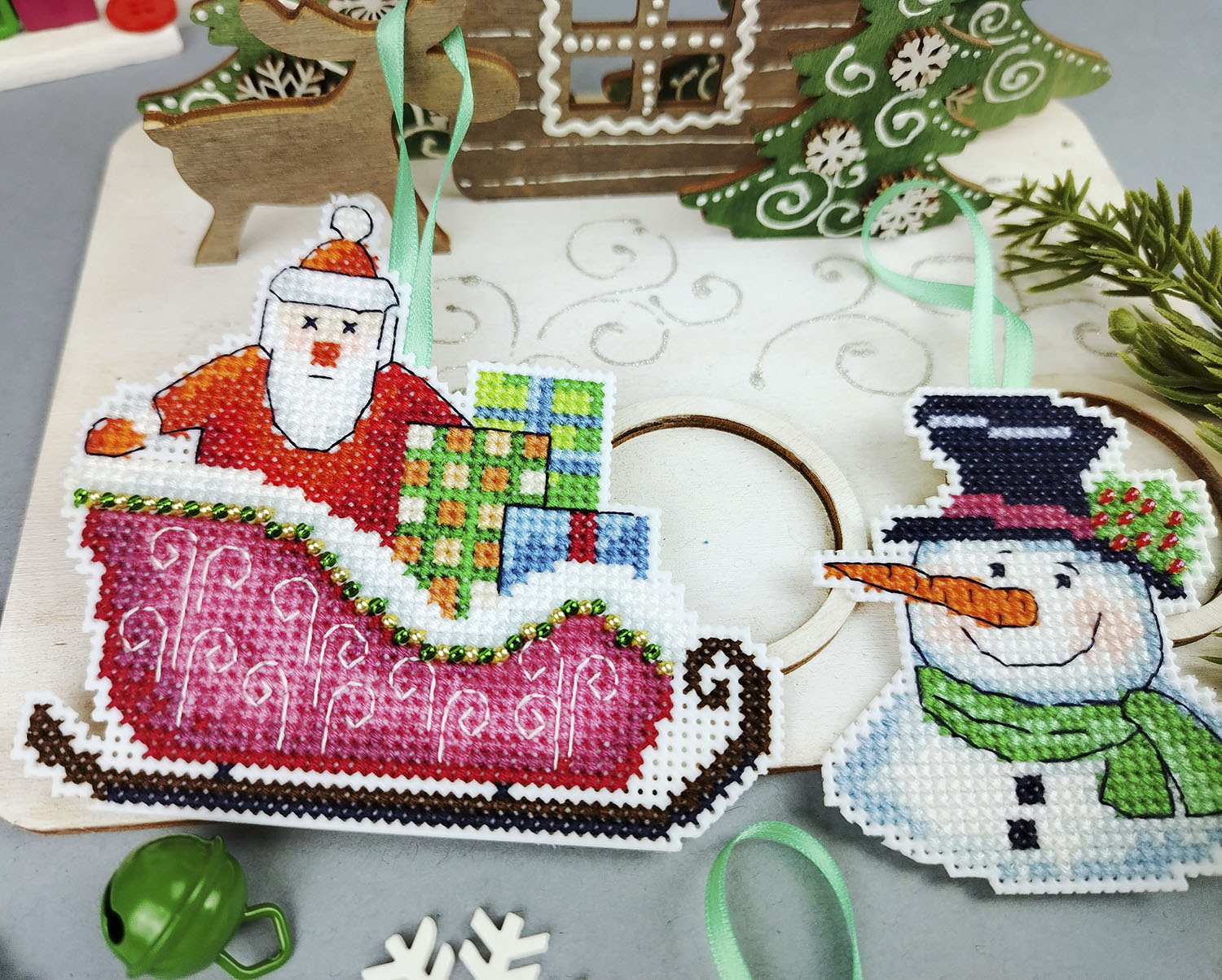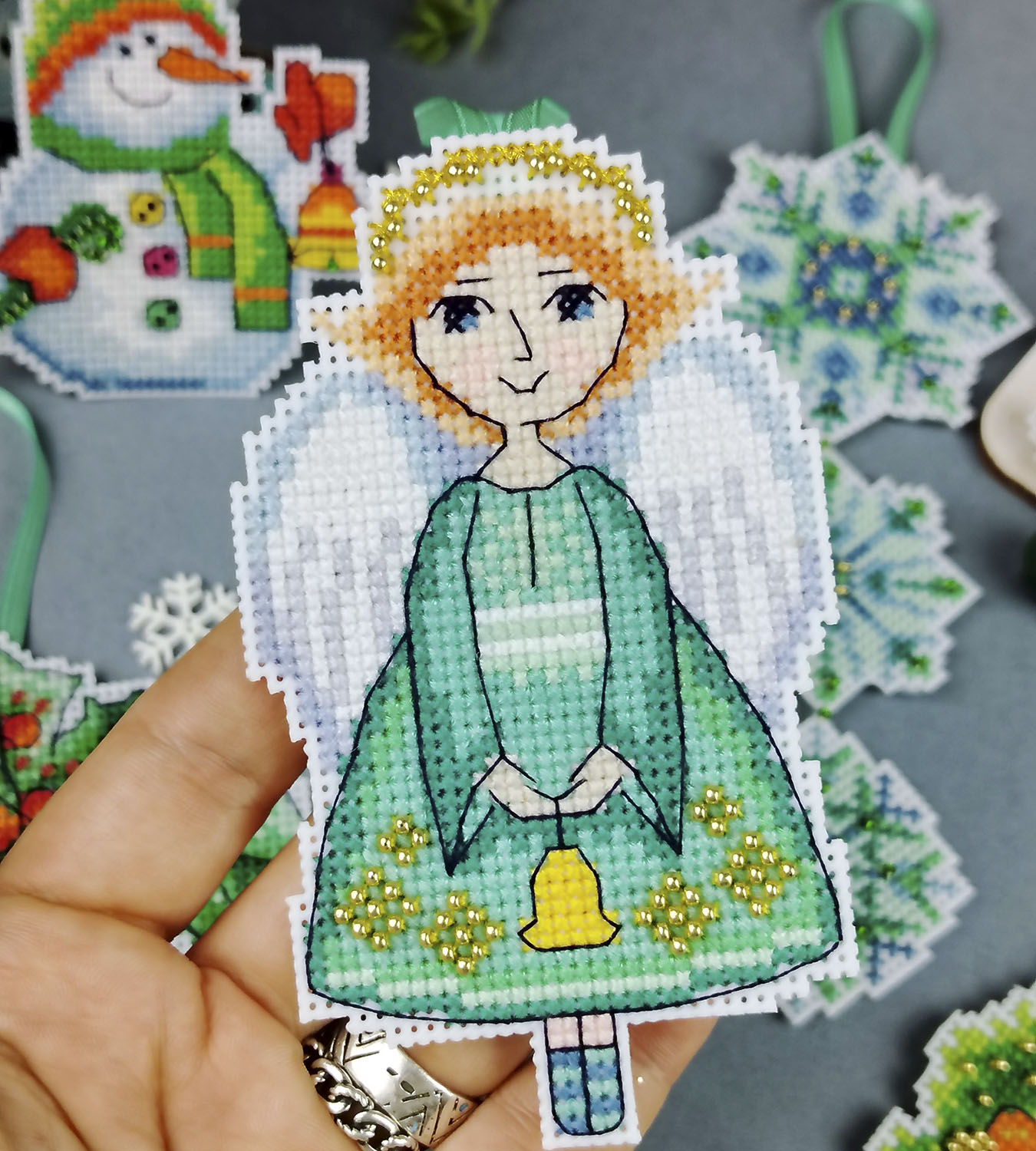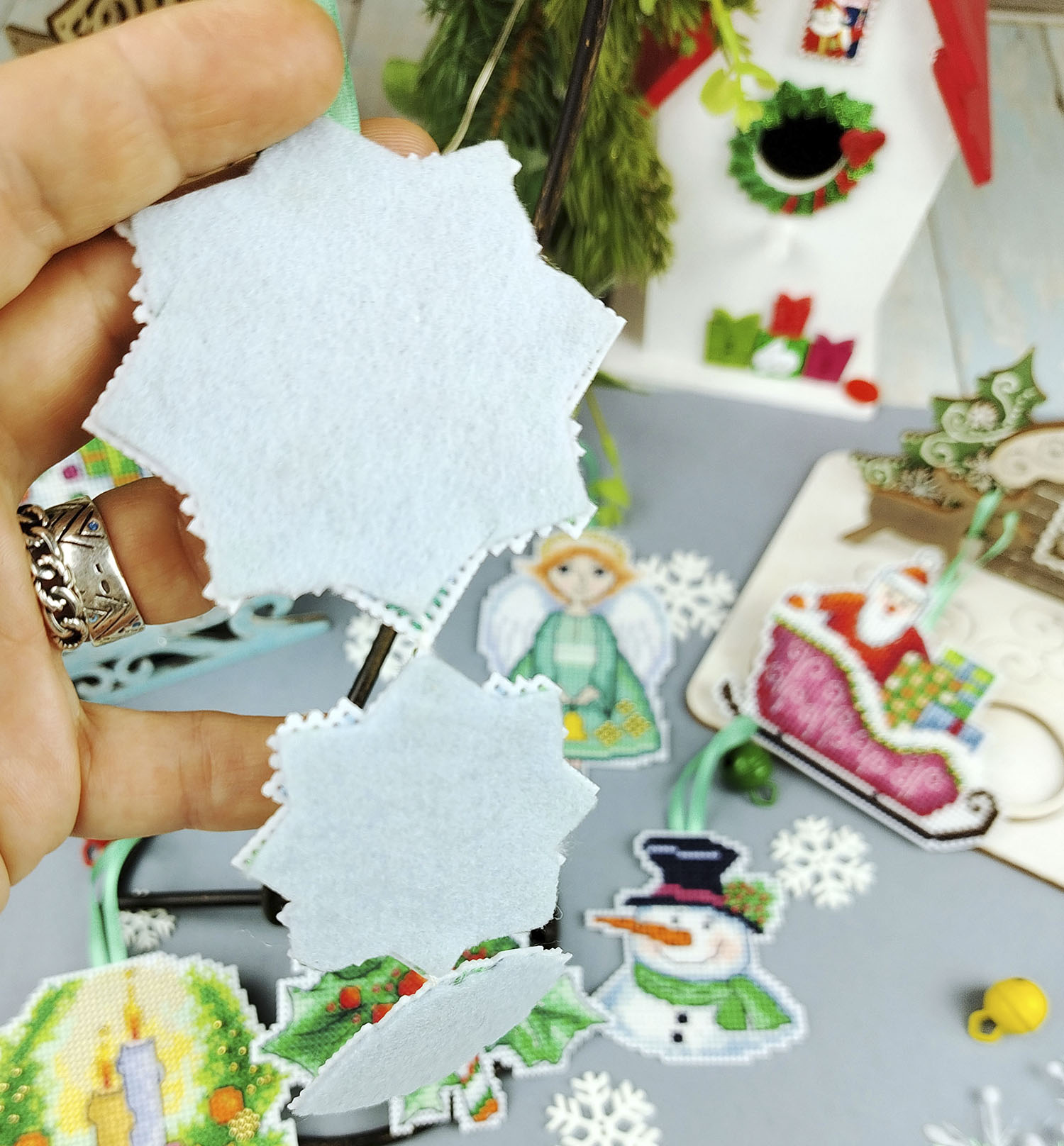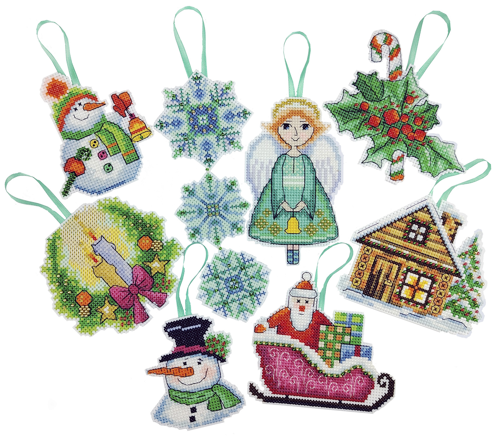 Канва пластиковая белая, мулине Finca 33 цв., тесьма, бисер, игла, инструкция, схема черно-белая. Размер готовых игрушек:10х9 см 17х7 см, 11х7 см