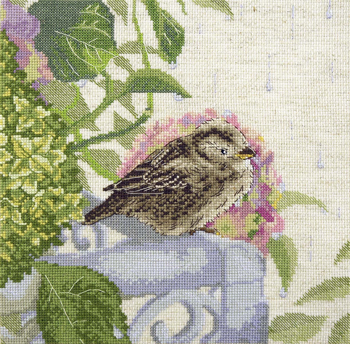Прошумел короткий летний дождь, разогнал стайку шумных воробьев, намочил цветы и траву. Только один воробышек остался, сидит нахохлившись, косится на падающие капли и ждет, когда же выглянет солнышко…
