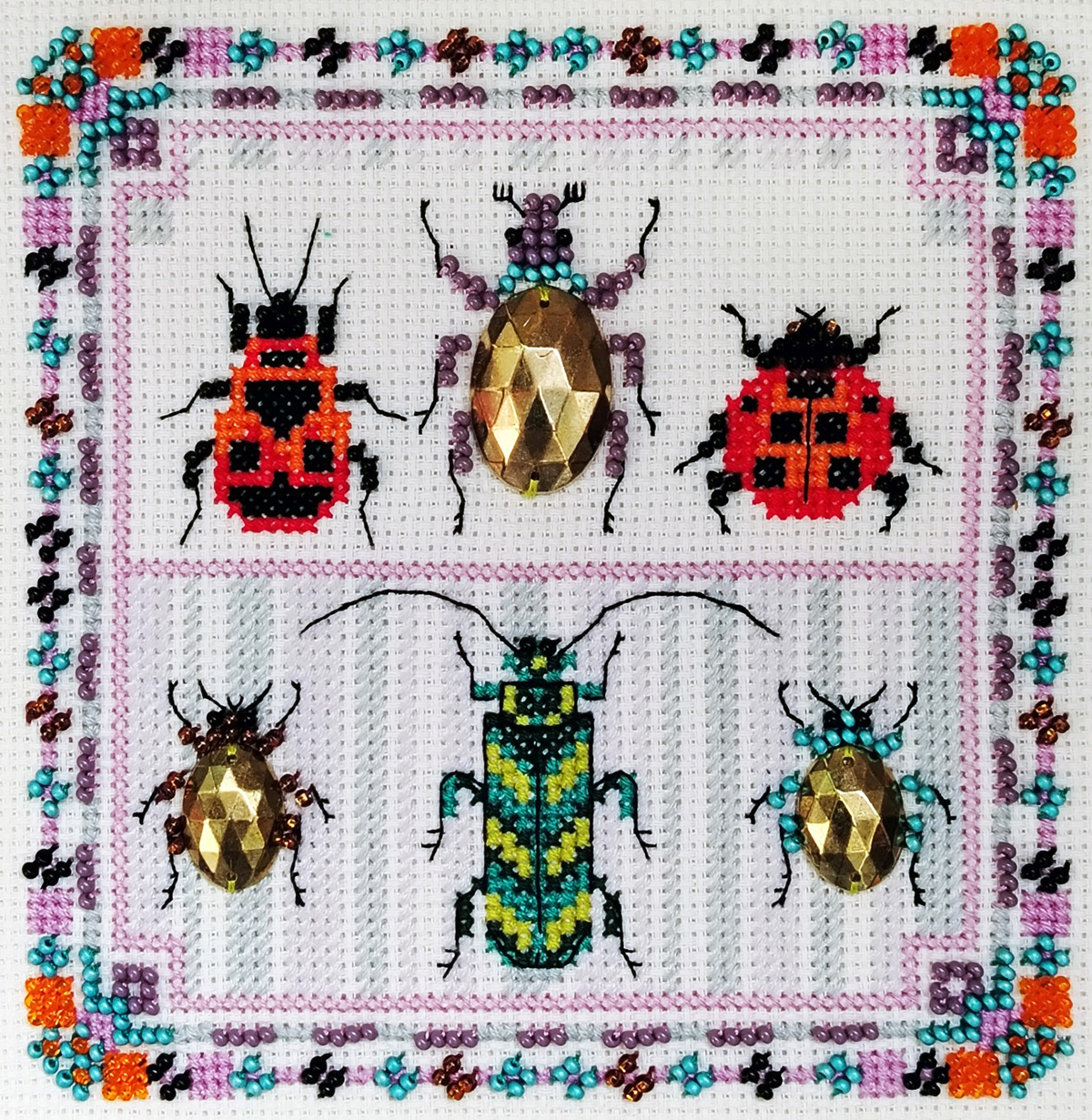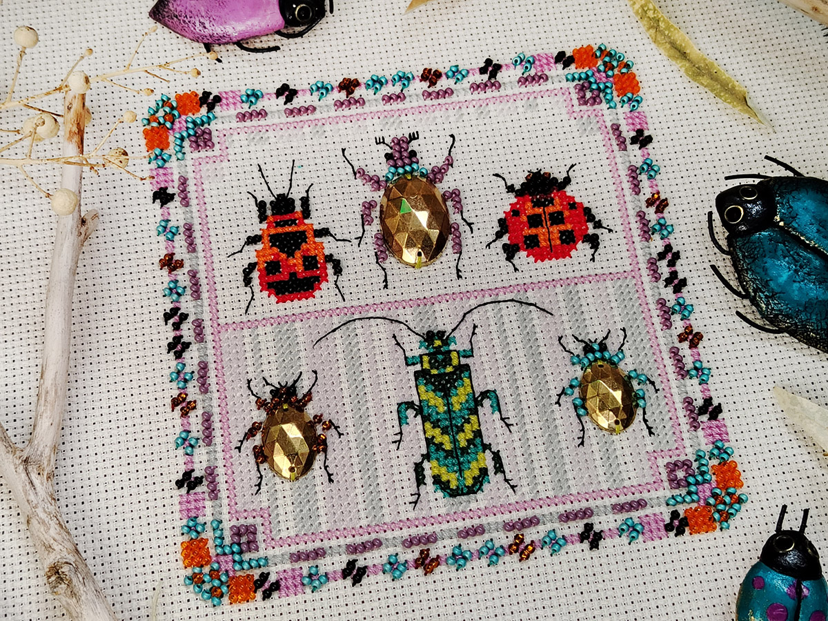 счетный крест + частичная вышивка бисером