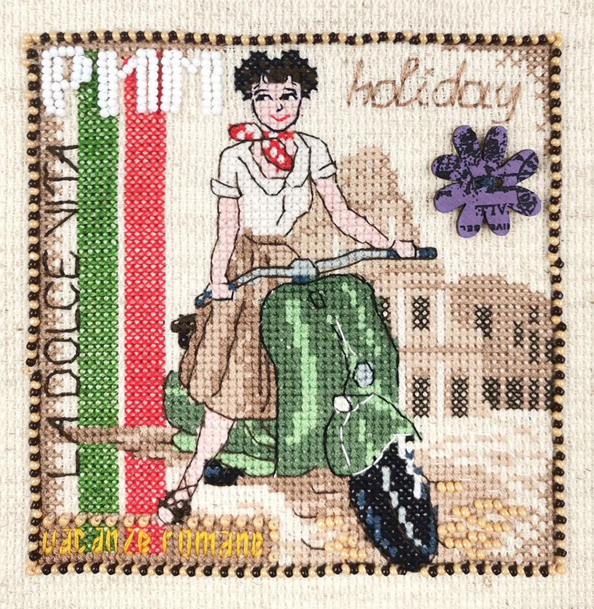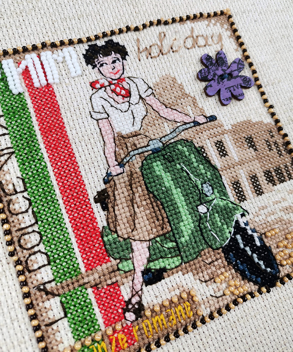 счетный крест + частичная вышивка бисером